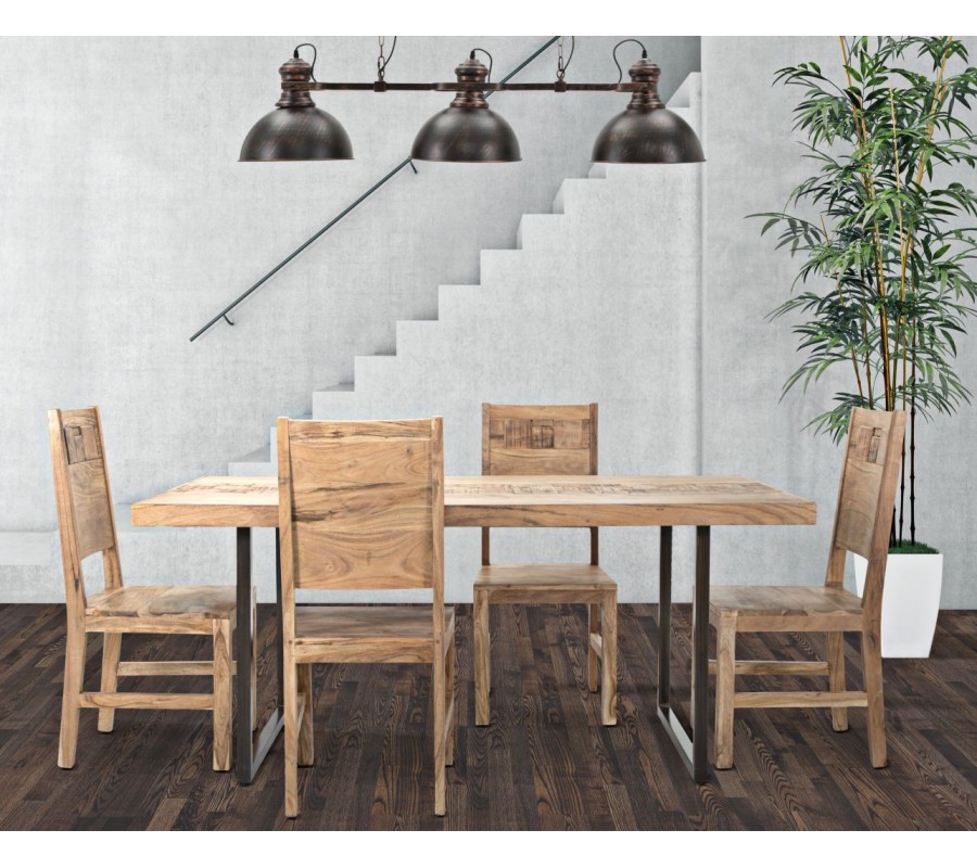 Dizajnová masívna zostava jedálenského nábytku Cubilio z akáciového dreva v naturálnej svetlej hnedej farbe