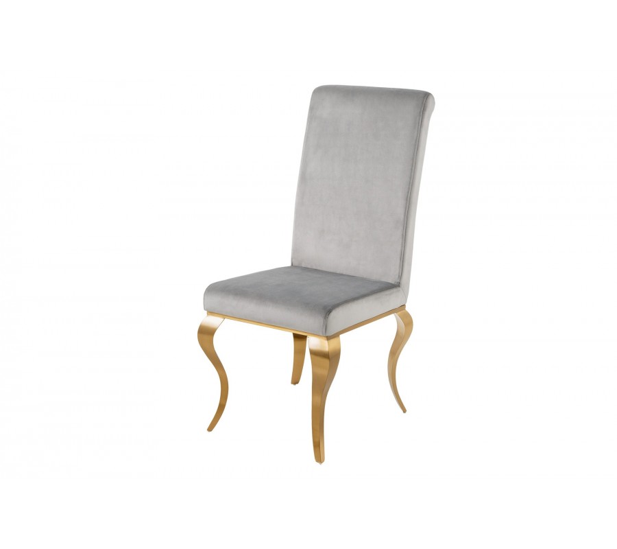 Dizajnová baroková jedálenská zostava Modern Barock v zlatej a sivej farbe s prírodným dreveným akcentom