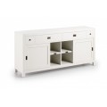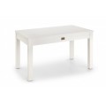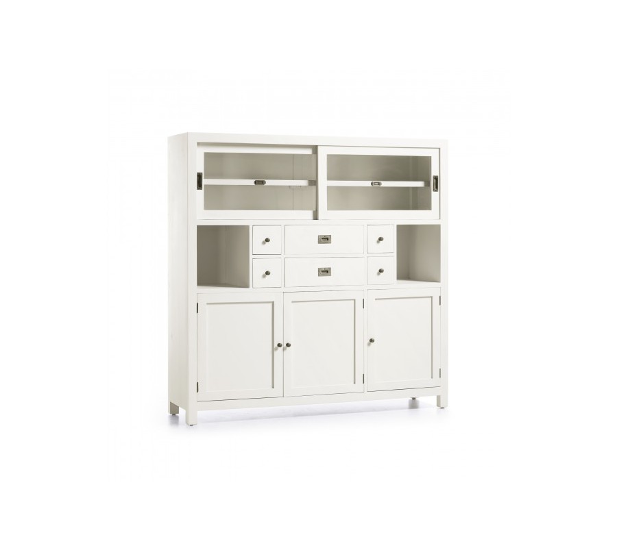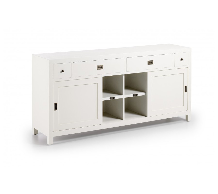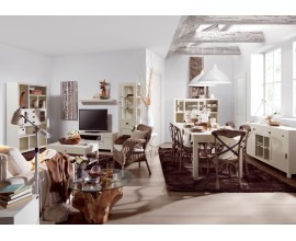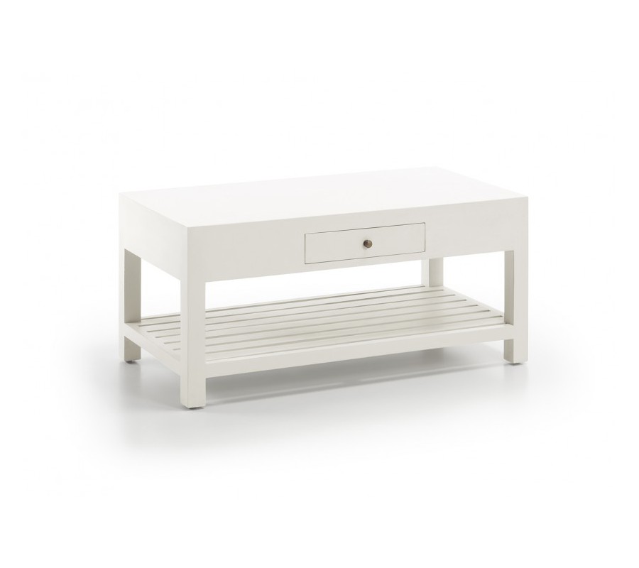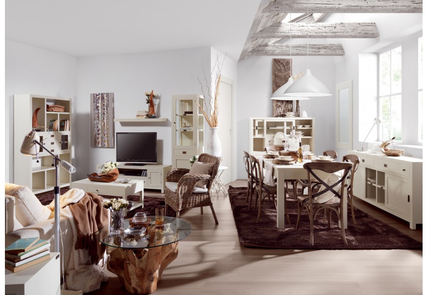 Nábytok z masívneho TEAKOVÉHO DREVA s bielou matnou povrchovou úpravou, kusy s tmavou vrchnou doskou sú vyrobené z dreva CAOBA (mahagon) s výraznou štruktúrou dvera a nerovným, hladkým a lesklým lakovaným porvchom.