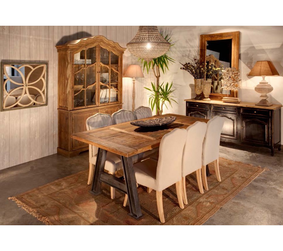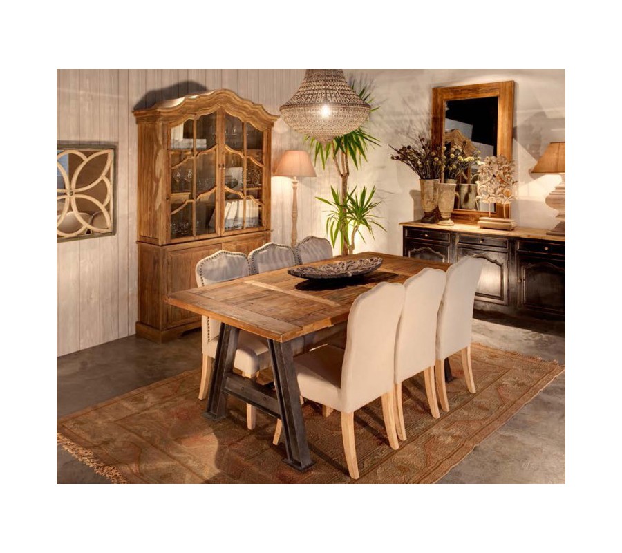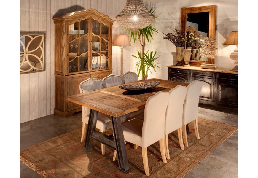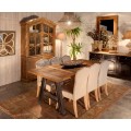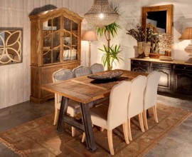 Štýlová jedáleň z kolekcie nábytku BERN DARK v sebe spája koloniálny a vintage štýl. Sada obsahuje jedálenský stôl a vitrínu, oboje vyrobené z masívneho dreva v zostarnutom vzhľade. Je vhodná najmä do svetlých priestorov, kde sa nábytok tejto kolekcie stane dominantným prvkom a vynikne. Kusy možno kúpiť aj samostatne.