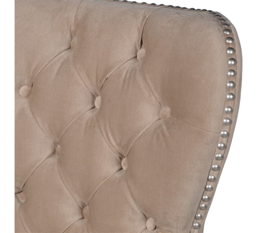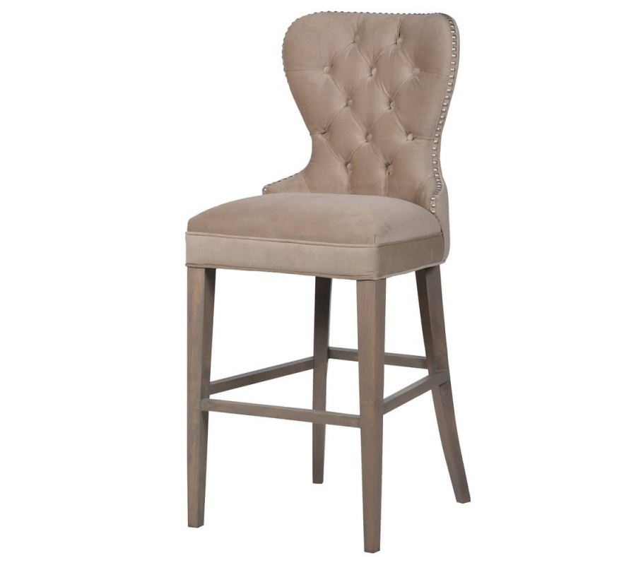 Barová stolička Ador II disponuje nadčasovým prešívaním v štýle Chesterfield, ktoré je krásnym oživením každého interiéru. Čalúnená stolička Ador II v odtieňoch béžového zamatu zapadne do klasických interiérov a zároveň sa nestratí v interiéri s modernými prvkami. Vysoké operadlo stoličky Ador II je po okrajoch zdobené striebornými čalúnnickými sponkami, ktoré v kombinácii so zamatovým poťahom stoličke dodávajú odlesk a nádych luxusu. Stolička Ador I má nohy z bledého masívneho dreva v odtieňoch béžovej. Vďaka výške operadla a mäkkému čalúneniu je sed na stoličke pohodlný aj počas dlhých stretnutí. Stolička Ador I sa hodí nie len k stolom a barovým pultom z masívneho dreva, ale aj k extravagantnému lesklému barovému nábytku.