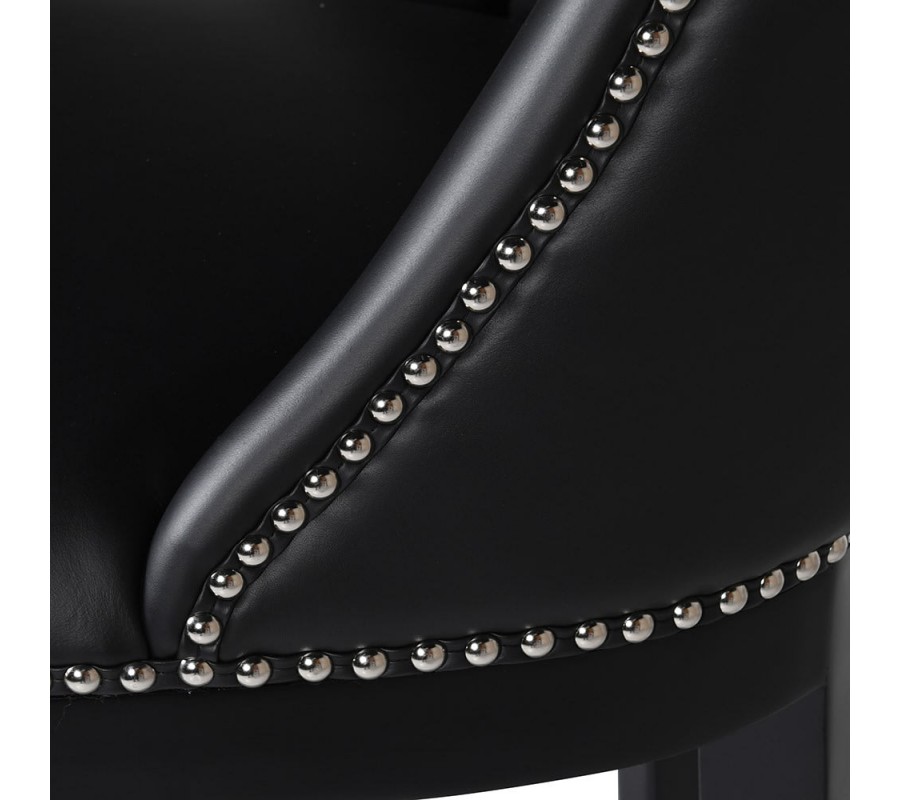 Dizajnová a nadčasové barová stolička Pollok z poťahom z čiernej ekokože je naozaj vkusným doplnkom do modernej domácnosti či kaviarne alebo baru. Mimoriadne dizajnovými prvkami stoličky Pollok sú strieborné cvoky lemujúce sedaciu časť a taktiež kontrastné prešívanie ružovými niťami, ktoré v kombinácii s nohami z brezového masívu v čiernej farbe pôsobia naozaj jedinečne a nadčasovo. V rámci doplnkov odporúčame koženú barovú stoličku kombinovať najmä s výraznými farbami a štýlovými dekoráciami s moderným až futuristickým nádychom.