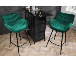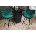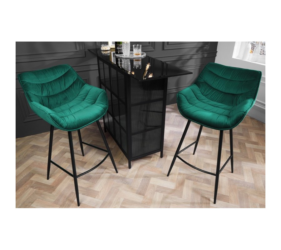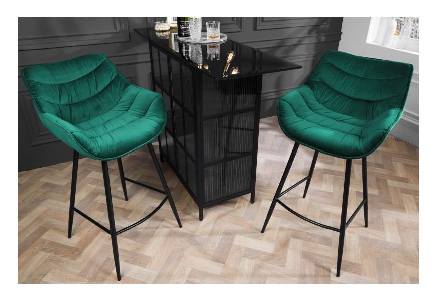 Dizajnová moderná barová stolička Kotor so smaragdovozeleným zamatovým čalúnením a čiernymi nohami z kovu 105cm