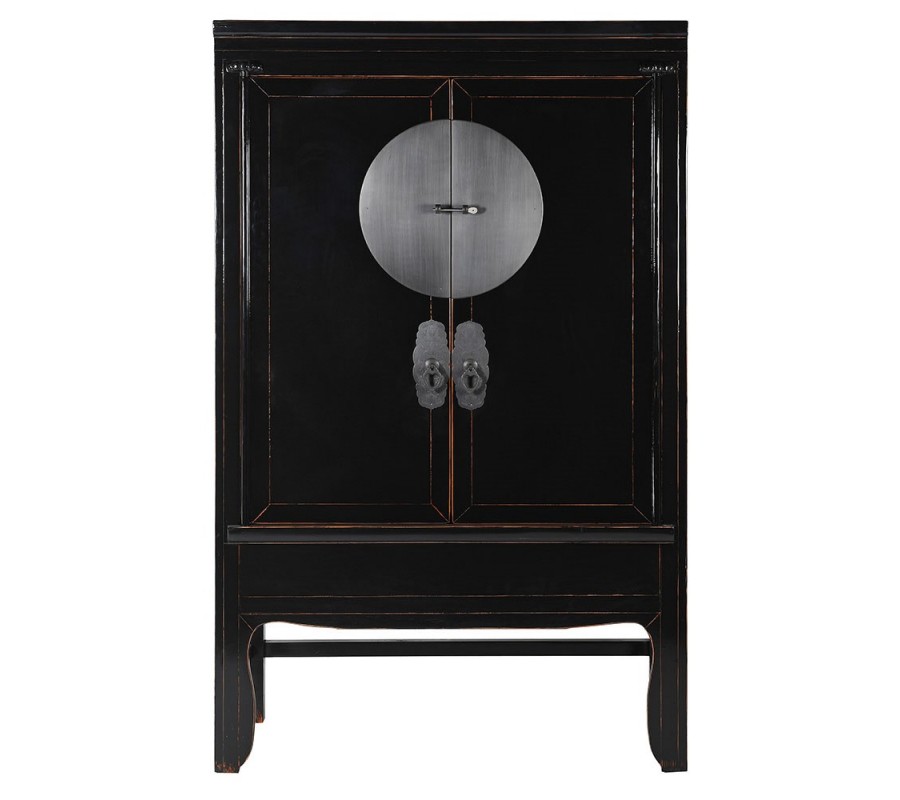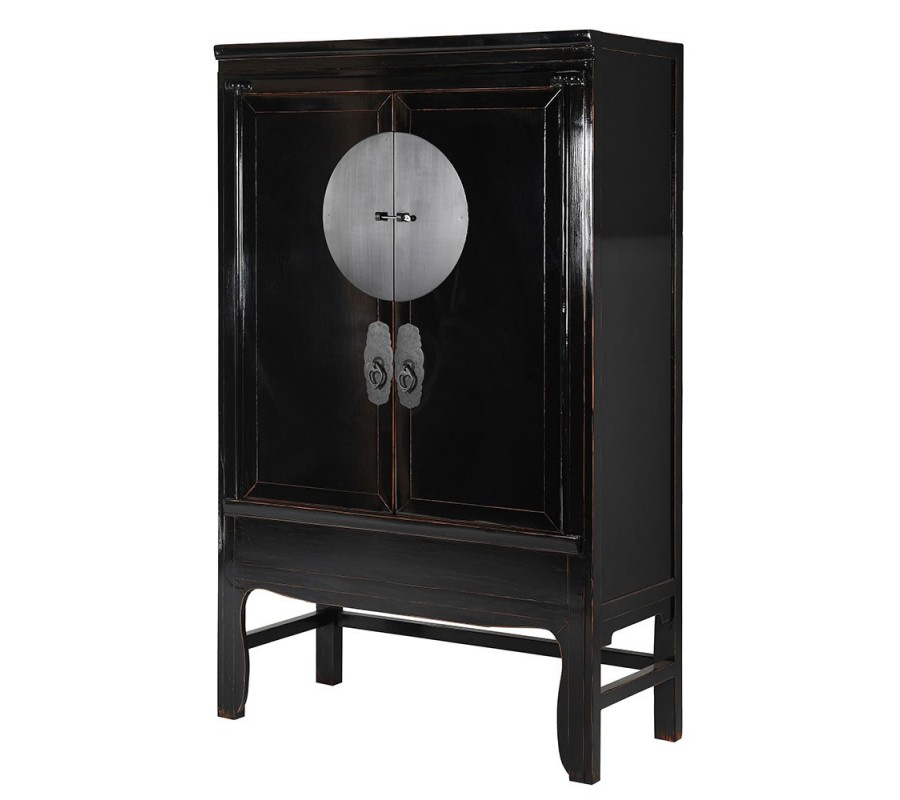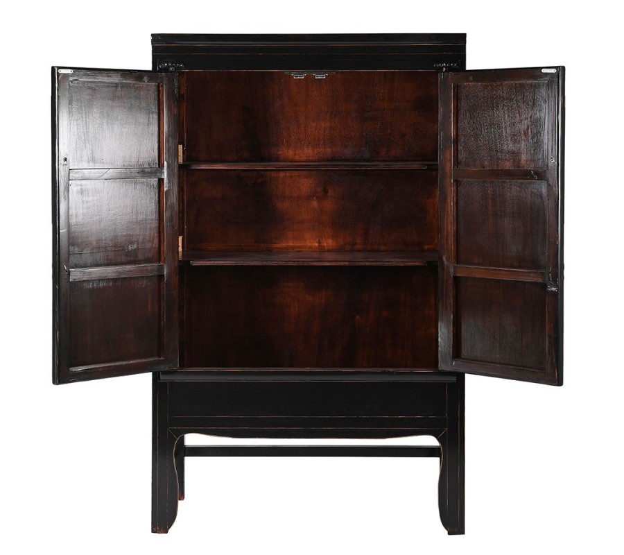 Orientálna barová skrinka Yessien z dreveného masívu s čiernou povrchovou úpravou na nožičkách 175cm