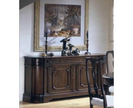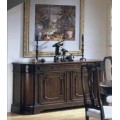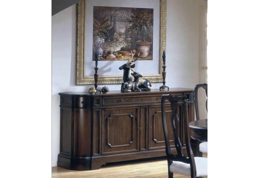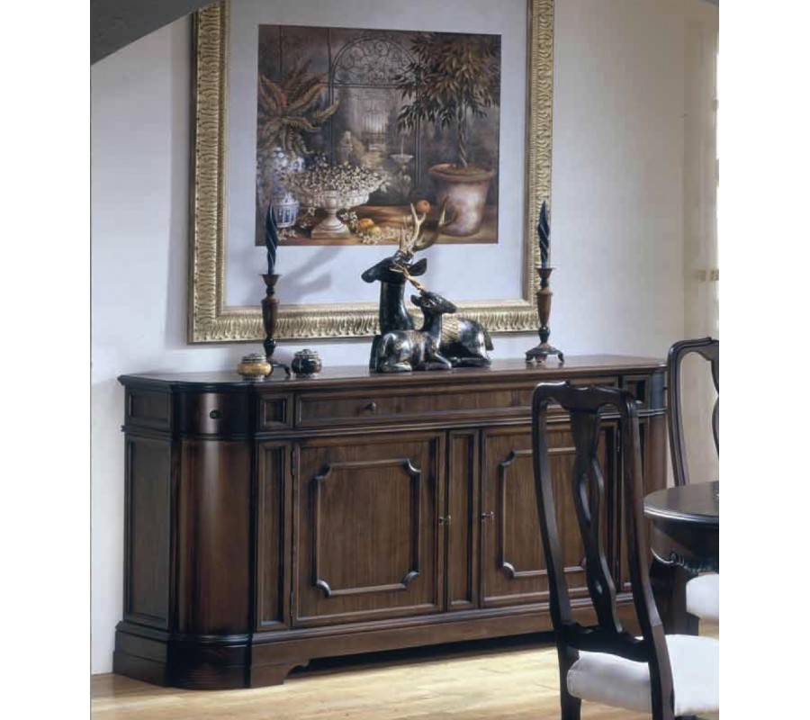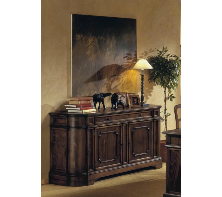 Luxusný rustikálny príborník Nuevas Formas je vyrobený z kvalitného tvrdého dreva. Jeho oblé línie na oboch bočných stranách spolu s vyrezávanou rustikálnou výzdobou mu dodávajú nádych starožitných kúskov. Príborník je vybavený dvomi veľkými dvierkami v strede jeho prednej časti, za ktorými sa nachádzajú poličky pre uschovanie riadu či rôznych iných predmetov. Po bokoch a v hornej časti je doplnený tromi praktickými zásuvkami pre uschovanie príboru či iných drobností. Odporúčame nad tento honosný príborník umiestniť aj zrkadlo z rovnomennej kolekcie, čim získate jedinečnú kompozíciu a luxusnú atmosféru vo vašej jedálni. Príborník je možné vyrobiť vo viacerých farebných prevedeniach.