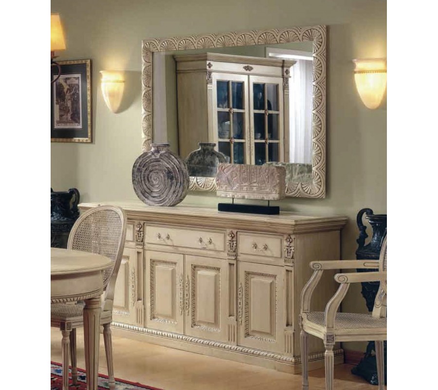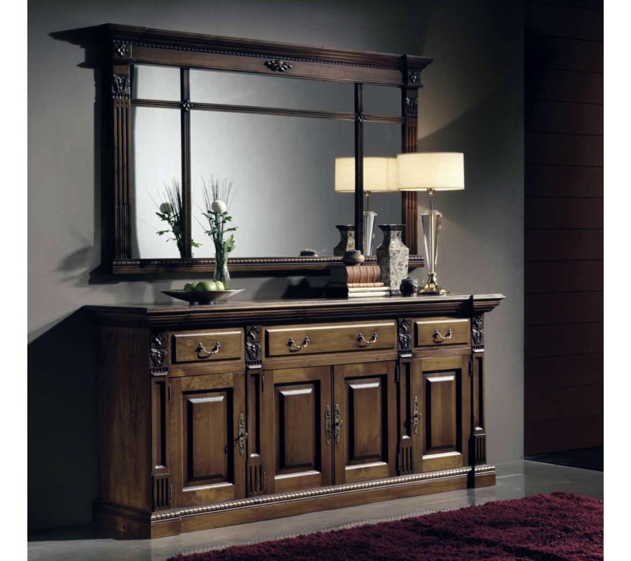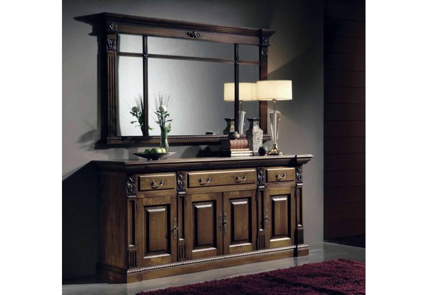Luxusný príborník Nuevas formas je vyrobený z kvalitného dreva a je obohatený nádhernými ručne vyrezávanými ornamentami. Zaujme predovšetkým milovníkov rustikálneho či starožitného nábytku, ktorí túžia obohatiť svoj interiér unikátnym kúskom. Príborník disponuje poličkami s dvierkami a tromi praktickými zásuvkami s kovovými úchytmi. Na výber ponúkame niekoľko obľúbených farebných prevedení, ktoré si môžete prezrieť v našom vzorkovníku.