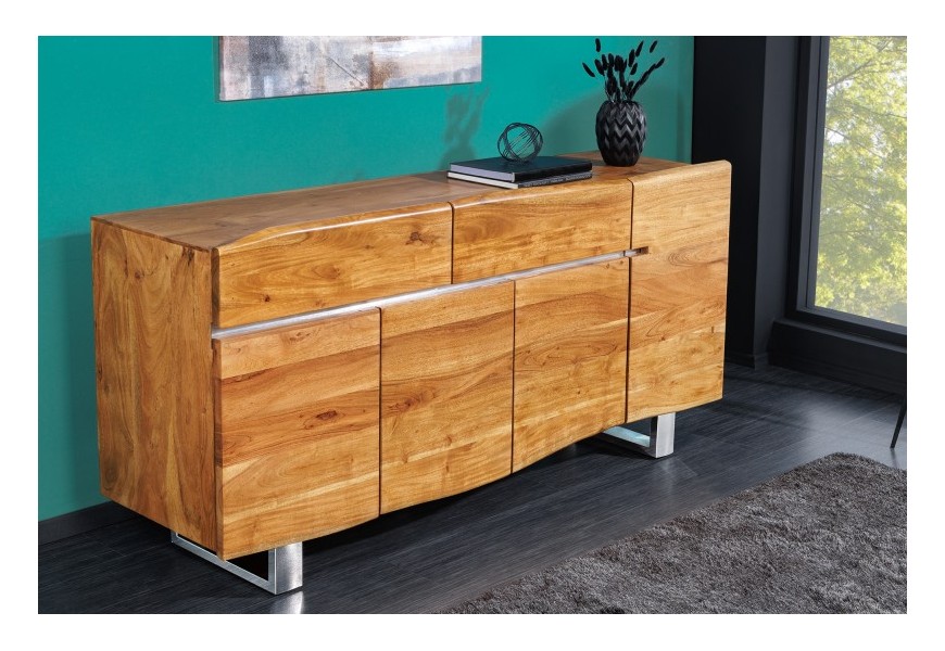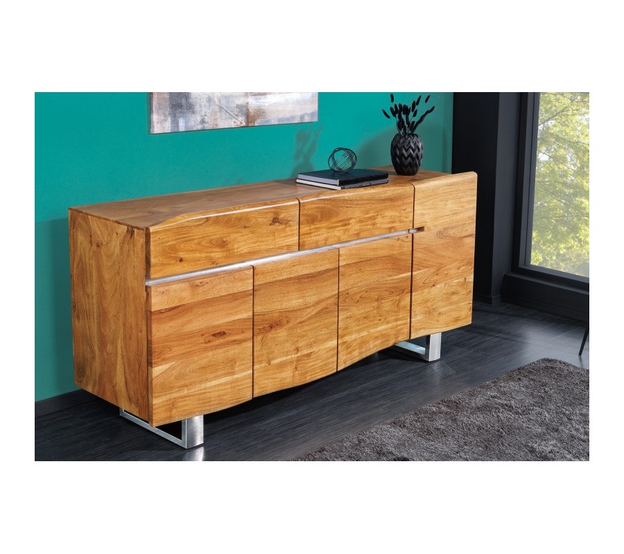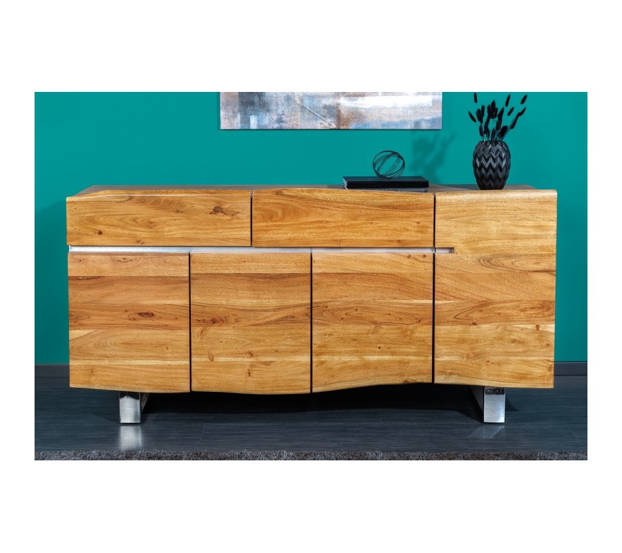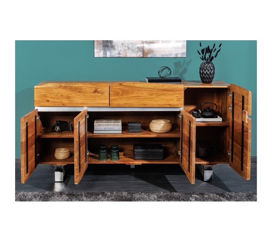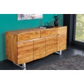 Originálny príborník Mammut II 170cm akácia je vyrobený z masívneho akáciového dreva. Stojí na chrómových, rámových nohách a je zdobený chrómovým pásikom. Veľkosť celková: 170 cm x 90 cm x 45 cm (Š xvxh), zásuvky: 55 cm x 10 cm x 35 cm (ŠxVxH), box ľavý: 40cm x 50cm x 35 cm (ŠxVxH), prostredná: 80 cm x 50 cm x 35 cm (ŠxVxH), pravý: 40 cm x 70 cm x 35 cm (ŠxVxH), farba: prírodná, materiál: masívne drevo-akácia, lakované, chrómová základňa. Diky ručnej práci je každý kúsok originálom.