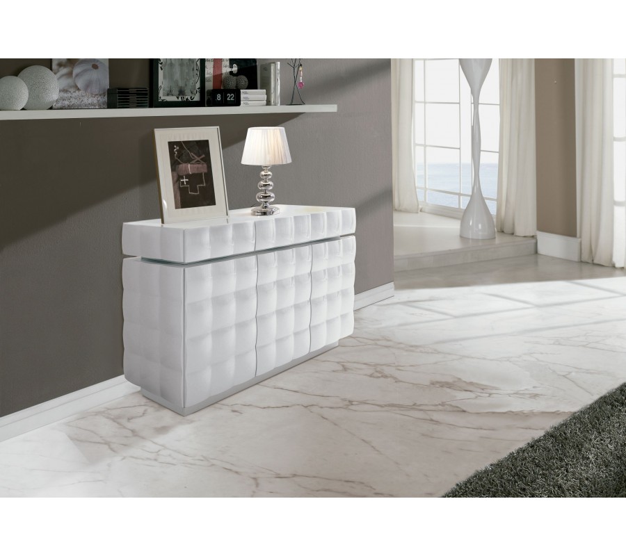 Lesklý moderný príborník Donato v bielej farbe 140cm s dvierkami