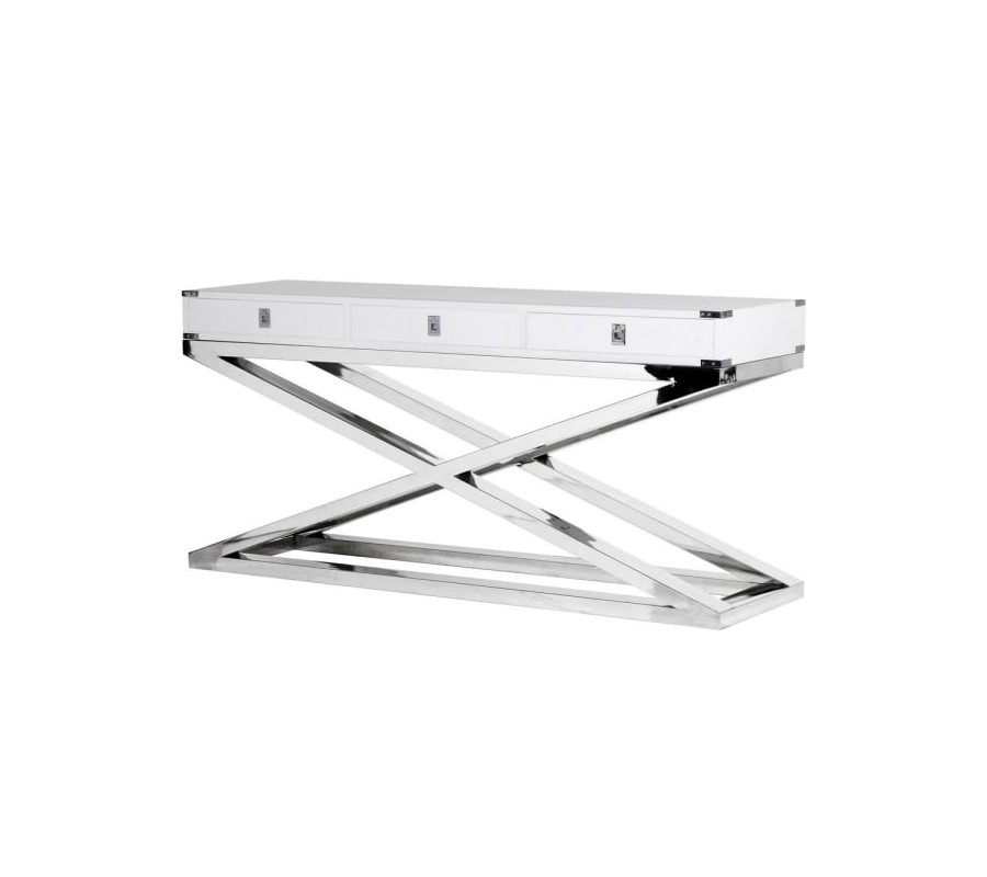 Art-deco luxusná biela konzola z masívu Wielton Blanc 160cm biely chrómový