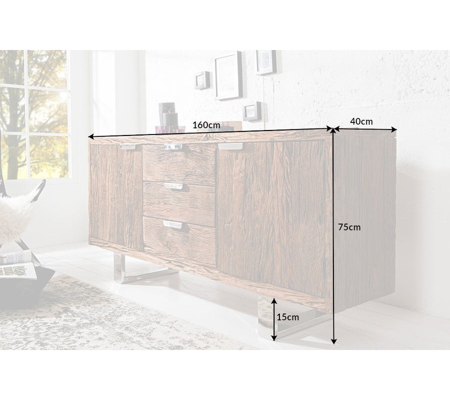 Luxusný masívny hnedý príborník Barracuda s výraznou štruktúrou a chrómovými detailmi s dvomi dvierkami a tromi zásuvkami 160 cm