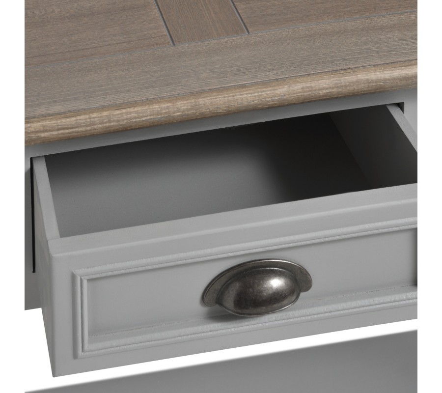 Štýlový kuchynský stolík z kolekcie Churchill pridá vašej kuchyni na útulnosti a autentickosti. Jemné farebné prevedenie a výrazné znaky vintage štýlu robia z tohto stolíka jedinečný kus kuchynského nábytku, ktorý poskytne štýlový priestor pre vašu kuchynskú výbavu.