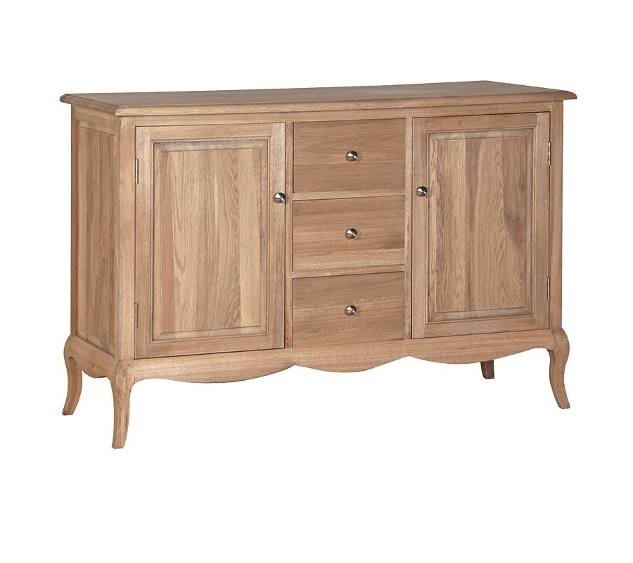 Štýlový koloniálny príborník Chene Vieux je vyrobený z masívneho dubového dreva, zaisťujúci pevnosť a trvanlivosť toho štýlového nábytku. Pýši sa prírodnou textúrou dreva a je doplnený dizajnovou spodnou lištou. Tento príborník obsahuje tri zásuvky a dvoje dvierka a radí sa do kolekcie koloniálneho nábytku Chene Vieux. Doplňte ho o ďalšie dizajnové kusy tejto kolekcie.