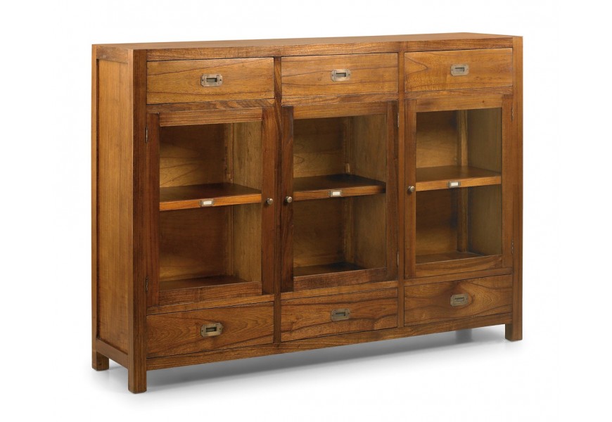 Luxusný masívny vysoký príborník Star so sklenenými dvierkami a zásuvkami 160cm