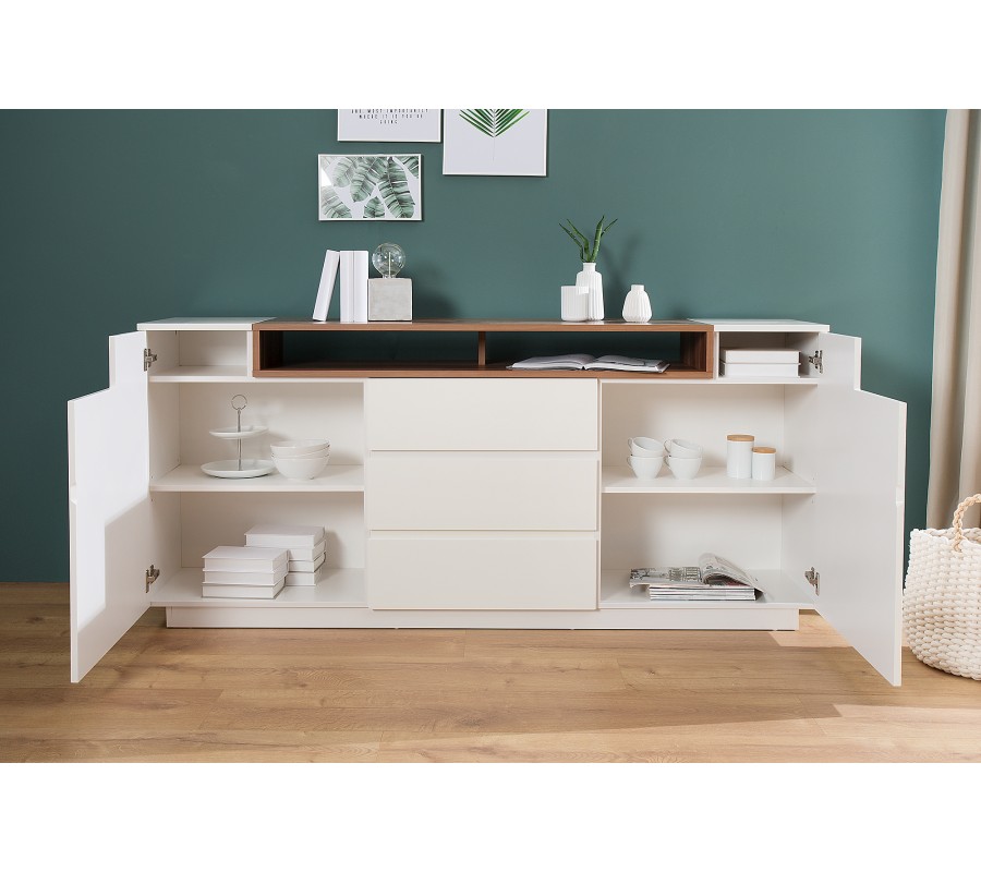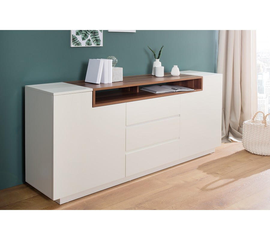 Dizajnový príborník Kingdom v bielom farebnom prevedení sa stane dokonalým doplnkom každej moderne zariadenej domácnosti. Jednoduchý tvar v kombinácii s neutrálnymi farbami robí z príborníka kúsok ktorý bude vhodne ladiť s farebne jemnými ale aj výraznými doplnkami a stenami. Svojou šírkou 180cm ponúka veľké množstvo praktického odkladacieho priestoru.