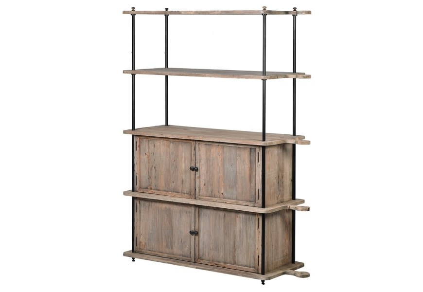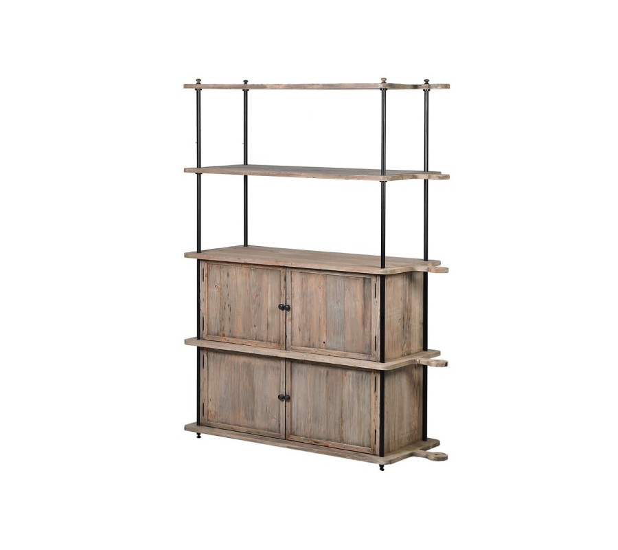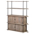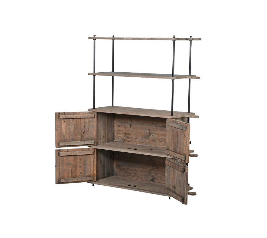 Vidiecky vysoký drevený príborník Tablero so štyrmi dvierkami a tromi policami na kovovej konštrukcii 175cm