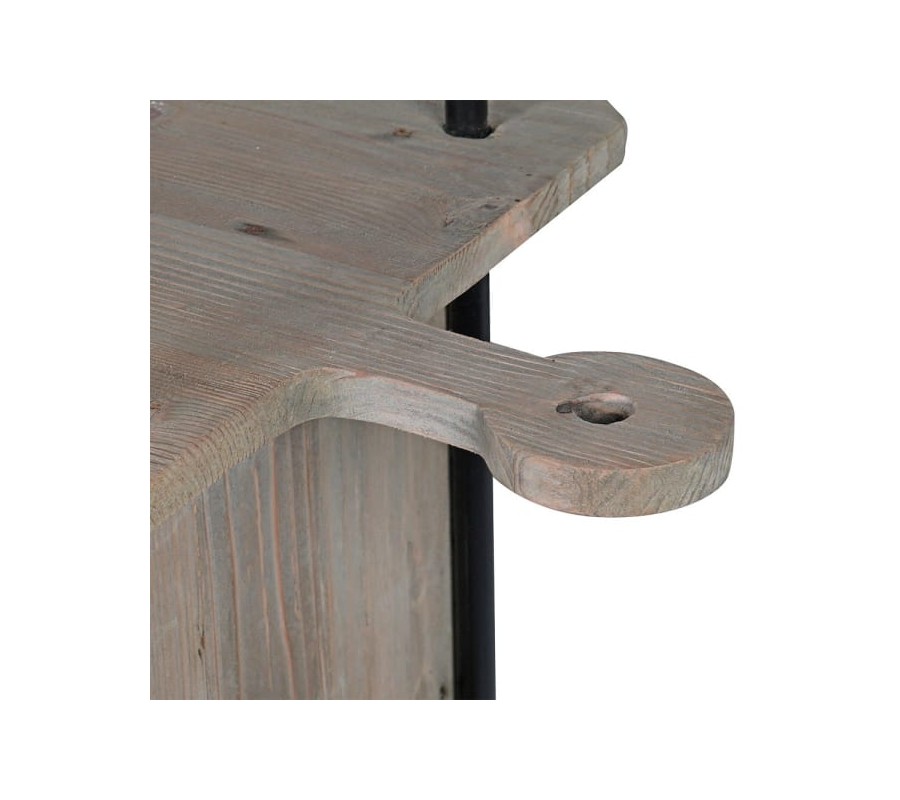 Vysoký príborník Tablero je zaujímavý tvarom troch vrchných poličiek, pripomínajúcim vidiecke kuchynské dosky, ktorý sa opakuje aj ako deliaca polička skrytá za dvojicou dvierok. Povrch borovicového dreva na poličkách a dvierkach má jedinečnú vintage patinu a zvýrazňuje prirodzenú krásu štruktúry dreva. Drevené časti sú ukotvené decentnou kovovou konštrukciou v čiernej farbe, ktorá dodáva príborníku ľahkosť a vzdušnosť. Kovové prvky sa opakujú v podobe praktických úchytov na dvierkach a vytvárajú príjemný materiálový kontrast. Vysoký príborník Tablero poskytuje množstvo úložného priestoru a dokonale vynikne vo vidieckych priestoroch jedální a kuchýň, môžete ho však použiť aj ako praktický regál v zimnej záhrade či tematických priestoroch kaviarní a reštaurácii.