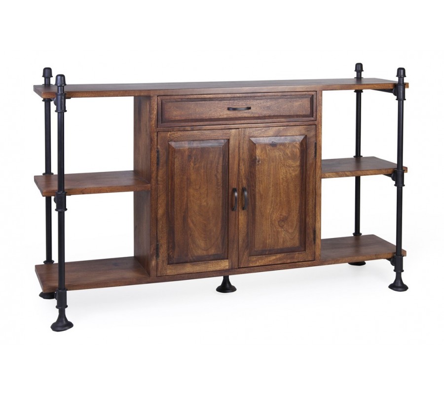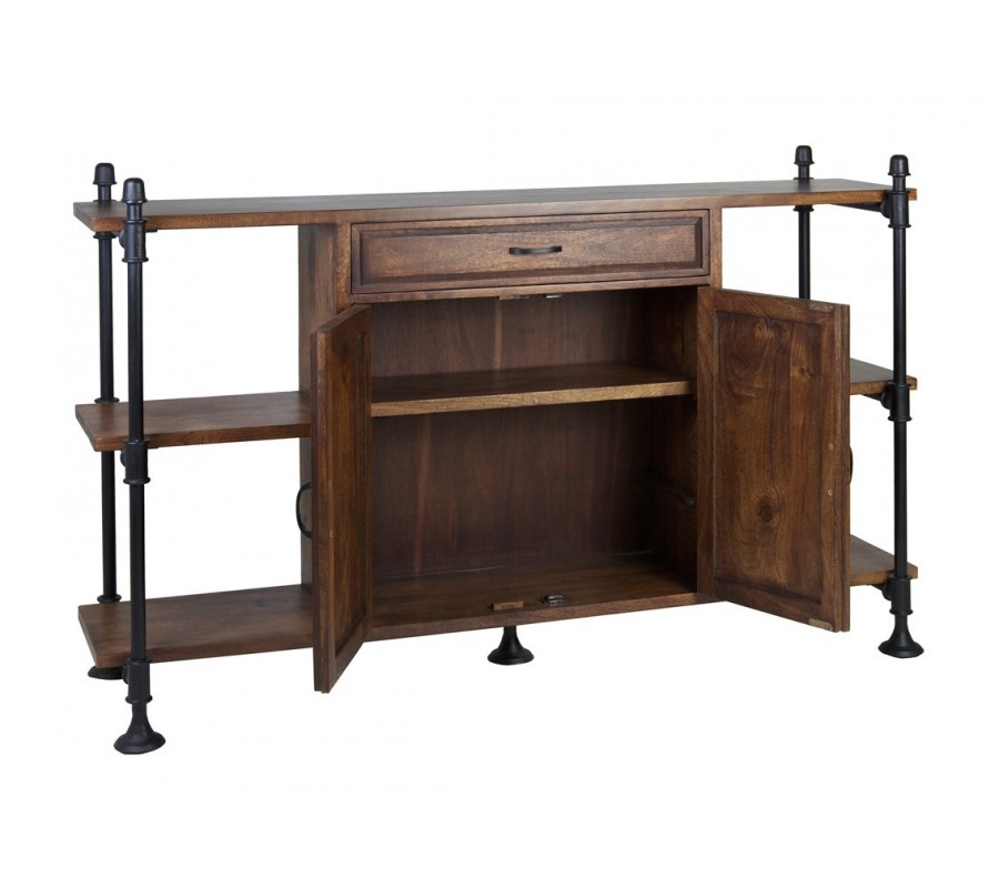 Industriálny masívny príborník HIERRO s dvierkami a poličkami 160cm