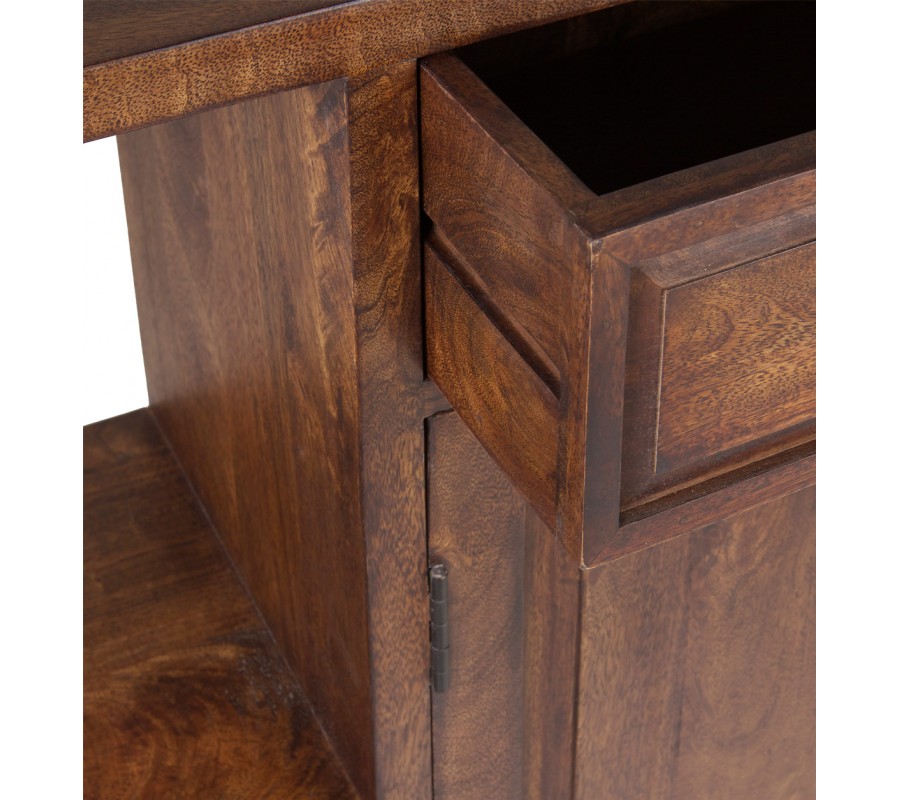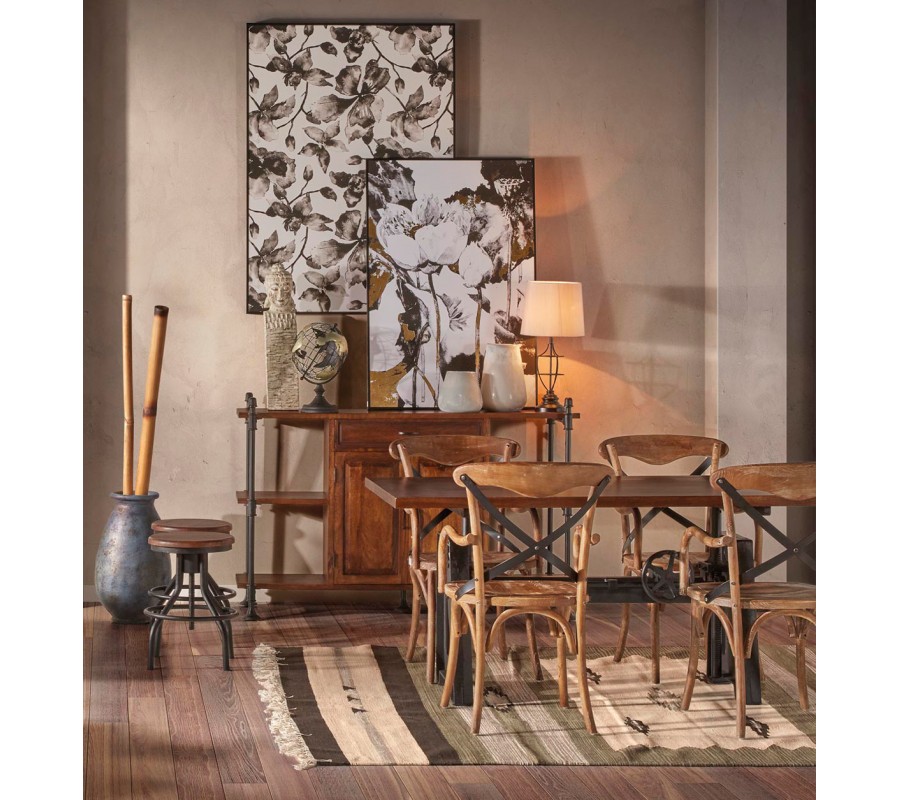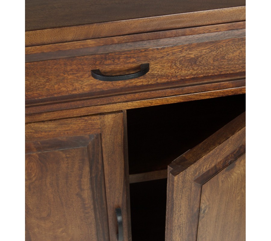 Štýlový a jedinečný príborník z kolekcie industriálneho nábytku Hierro je naozaj nenapodobiteľným kúskom. Konštrukcia pozostávajúca z čiernych kovových trubíc a masívneho dreva pôsobí naozaj neobyčajne a očarujúco. Minimalistická kombinácia tmavého mangového dreva a čierneho kovu dokáže naozaj rozžiariť vašu kuchyňu, jedáleň či obývačku. Nechajte sa uniesť množstvom úložného priestoru, ktorý Vám tento lukratívny kúsok ponúka za dverami dvojdverovej skrinky, v priestrannej zásuvke či na policiach.