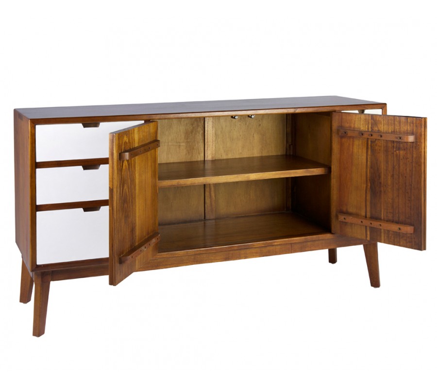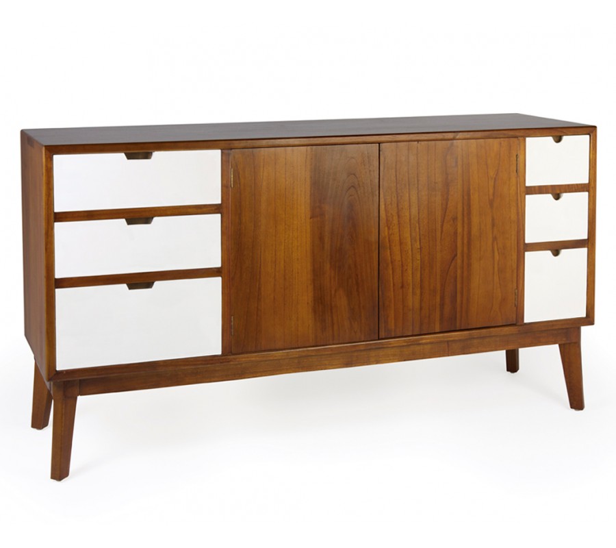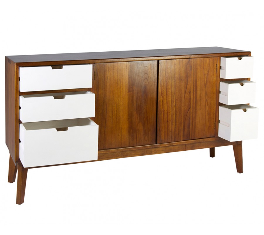 Luxusný príborník Norse z masívneho mindi dreva s dvojitými dvierkami a šiestimi zásuvkami hnedá biela 160 cm
