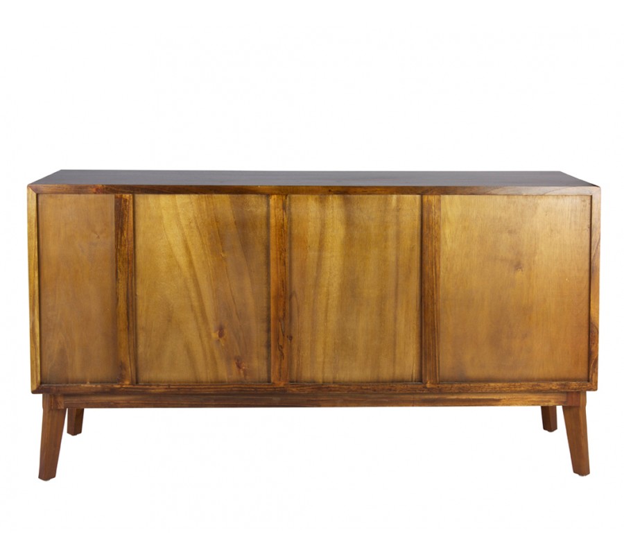 Luxusný príborník Norse v sebe spája minimalistický moderný dizajn a prírodnú krásu exotického dreva mindi. Tento materiál je výnimočný svojou teplou hnedou farbou s podtónmi žltej a červenej. Drevo mindi je tiež prirodzene lesklé, s nádhernou výraznou kresbou letokruhov.