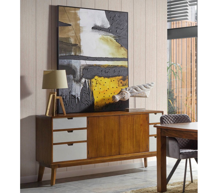 Biela farba zásuviek vytvára elegantný kontrast a zdôrazňuje štruktúru prírodného materiálu. V jedálni môžete príborník doplniť stolom z masívneho dreva v podobných teplých hnedých odtieňoch a stoličkami so svetlým čalúnením. Ideálna je tiež kombinácia s ďalším nábytkom z kolekcie Norse, ktorý nájdete v našej ponuke. Harmonický naturálny charakter môžete ešte zdôrazniť živými zelenými rastlinami.