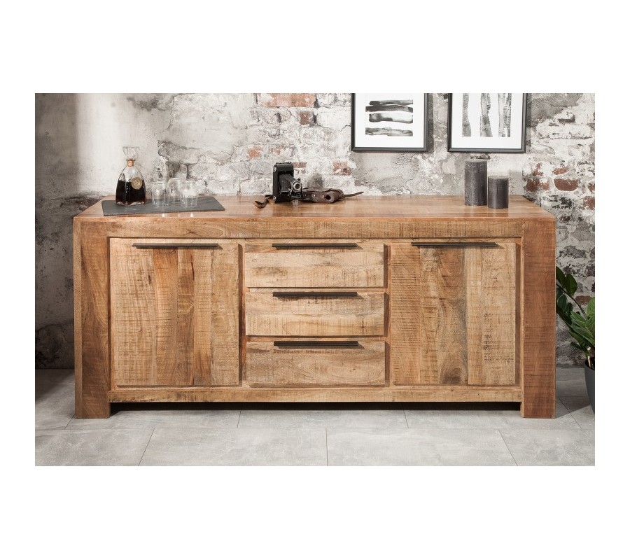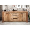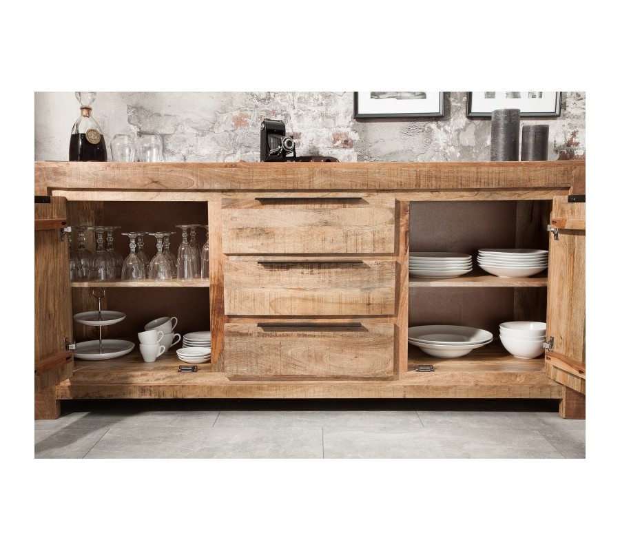 Príborník Steele Craft na prvý pohľad zaujme svojím moderným dizajnom a luxusne pôsobiacim vzhľadom masívneho mangového dreva. Povrch nábytku si zachováva prirodzenú kresbu dreva, čím vytvára teplý a autentický dojem. Vďaka precíznemu opracovaniu pôsobí robustne, no zároveň elegantne.