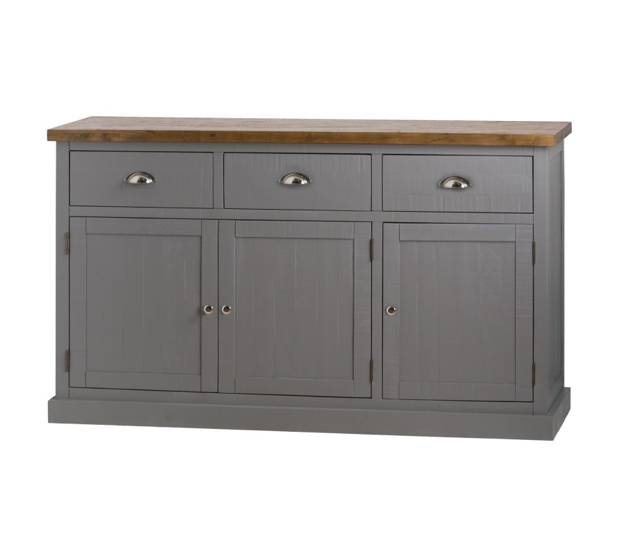 Štýlový príborník z kolekcie nábytku Byland v sebe šikovne prepája vidiecke a industriálne prvky s obľúbeným provensálskym štýlom. Okrem príjemného dizajnu vo vkusnej farebnej kombinácii príborník poskytuje množstvo praktického úložného priestoru v podobe troch zásuviek a troch skriniek s dvierkami. Príborník Byland je skutočne variabilným kúskom nábytku, ktorý si svoje miesto môže nájsť napríklad aj v predsieni či v spálni ako klasická komoda.