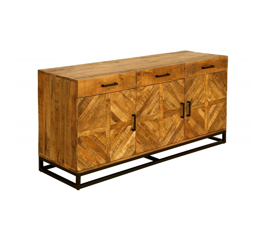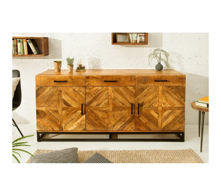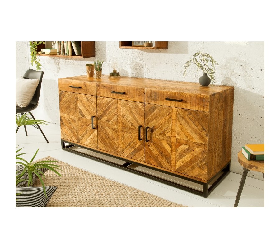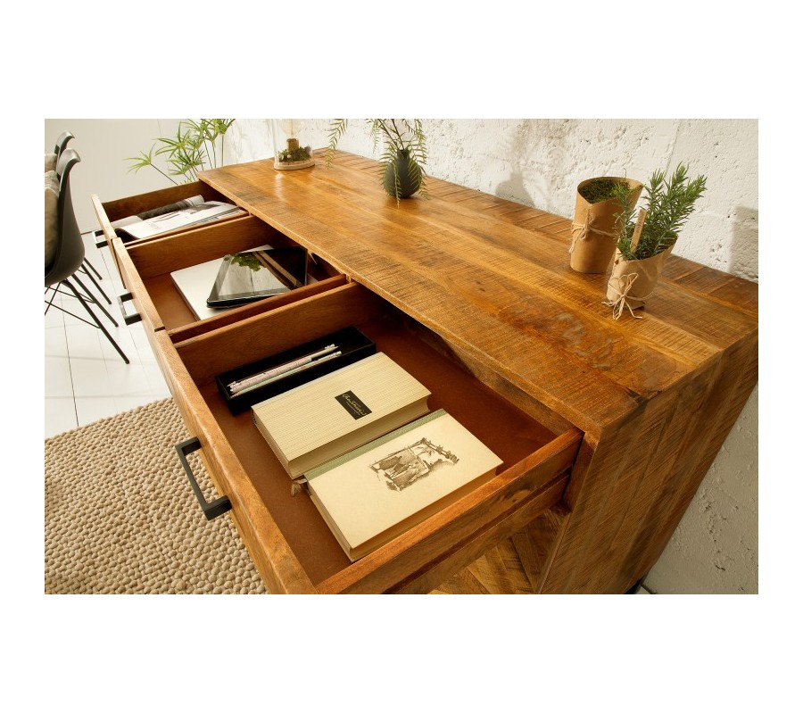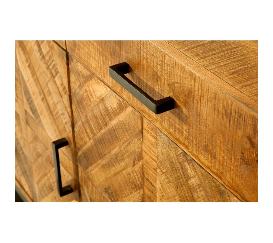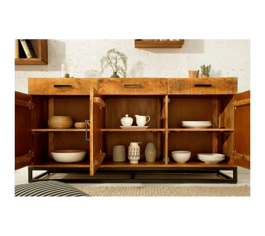 Túžite váš interiér obohatiť o kvalitný a dizajnový kúsok, ktorý ho rozžiari a dodá mu šmrnc? Moderný príborník Frida zo svetlého mangového masívu je skutočne jedinečným kúskom, ktorý môže byť aj váš! Jasná farba krásne vynikne v svetlejšie ladených priestoroch a dá sa skvelo kombinovať so škálou teplých prírodných farieb. Príborník disponuje tromi praktickými zásuvkami a tromi dvierkami, poskytuje tak pre vás dostatočný úložný priestor. Jednoduchá kovová konštrukcia a rukoväte tmavej farby pekne kontrastujú k svetlej farbe dreva. Na povrchu tiež vidno zaujímavú kresbu dreva, ktorá dodáva príborníku Frida jedinečný charakter.