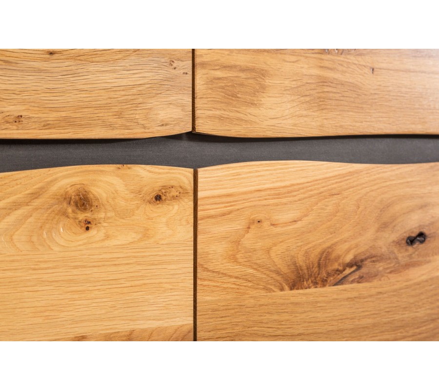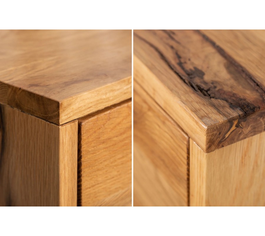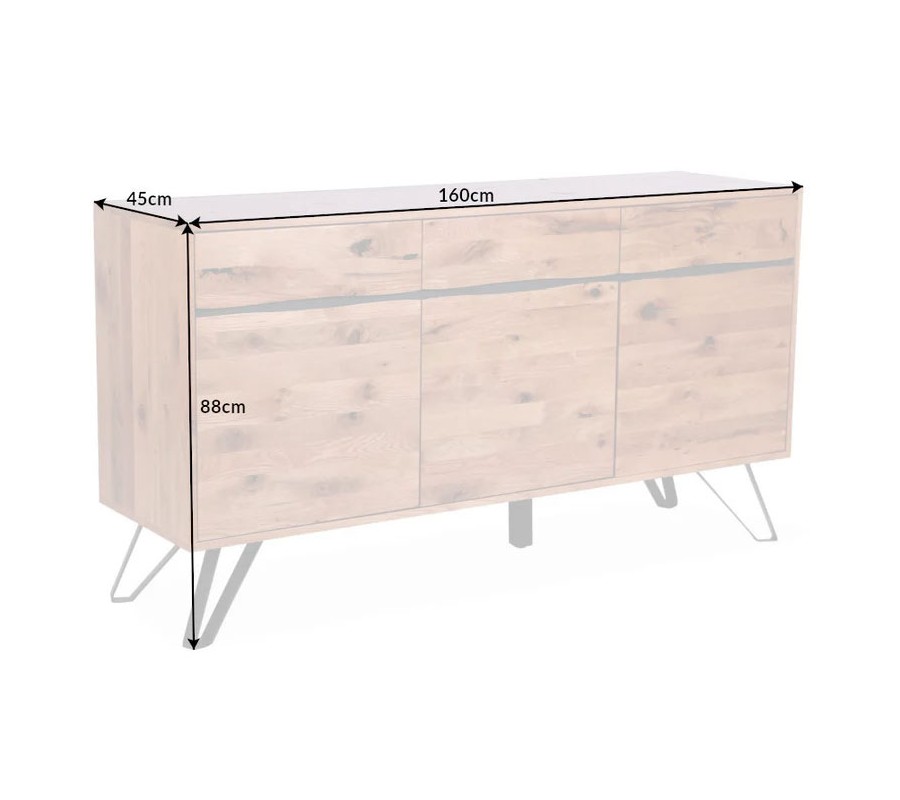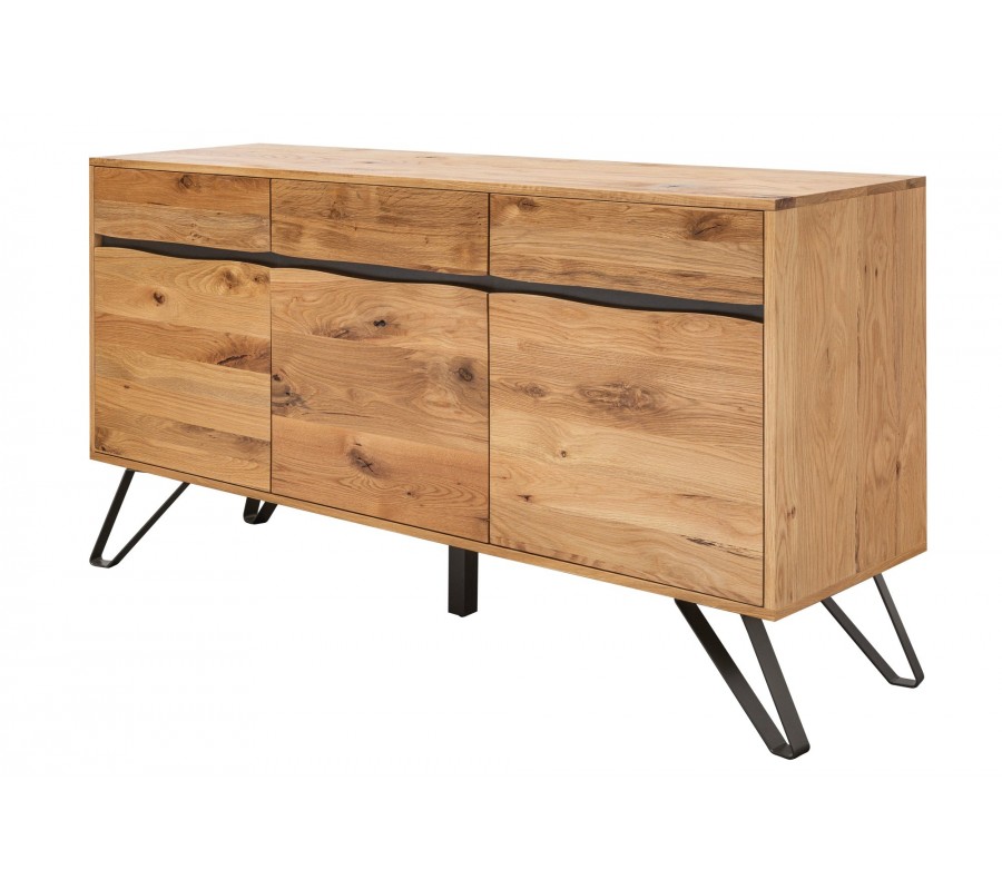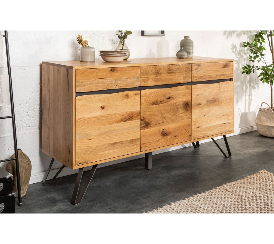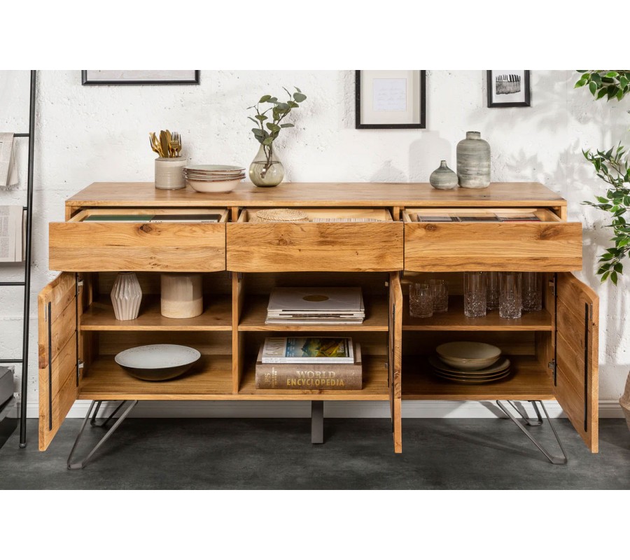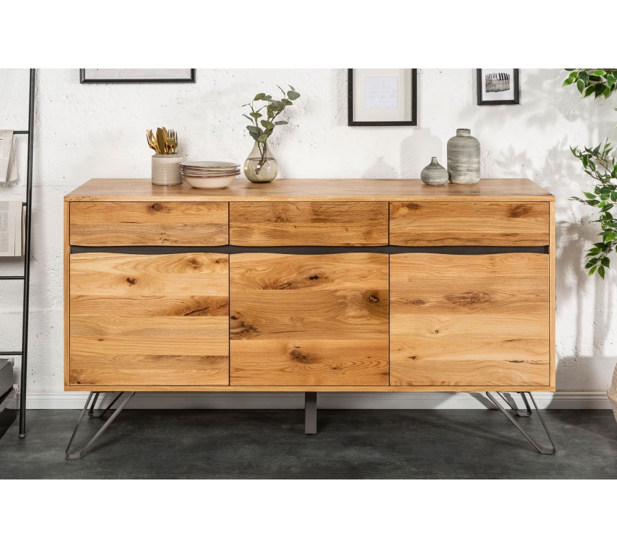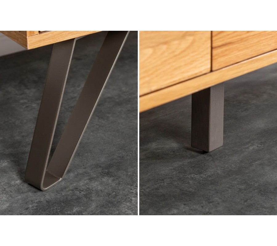 Moderný príborník Andala je vyrobený z masívneho dubového dreva. Na jeho povrchu je možno vidieť zaujímavú kresbu, ktorá robí každý kúsok jedinečným a originálnym. Príborník Andala disponuje tromi praktickými zásuvkami a tromi dvierkami, ktoré vám poskytujú dostatok úložného priestoru, či už ho umiestnite v jedálni alebo v obývačke. Svetlohnedé drevo je kombinované s kovovými nohami, ktoré dotvárajú celý dizajn stolíka. Skvelo vynikne v každom modernom či industriálne ladenom interiéri a dá sa ľahko doladiť so širokou škálou farieb. Odporúčame taktiež kombináciu s ďalšími kúskami z našej štýlovej kolekcie Andala.