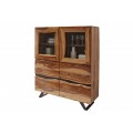 Štýlová industriálna vitrína Sheesham z masívneho dreva 140cm