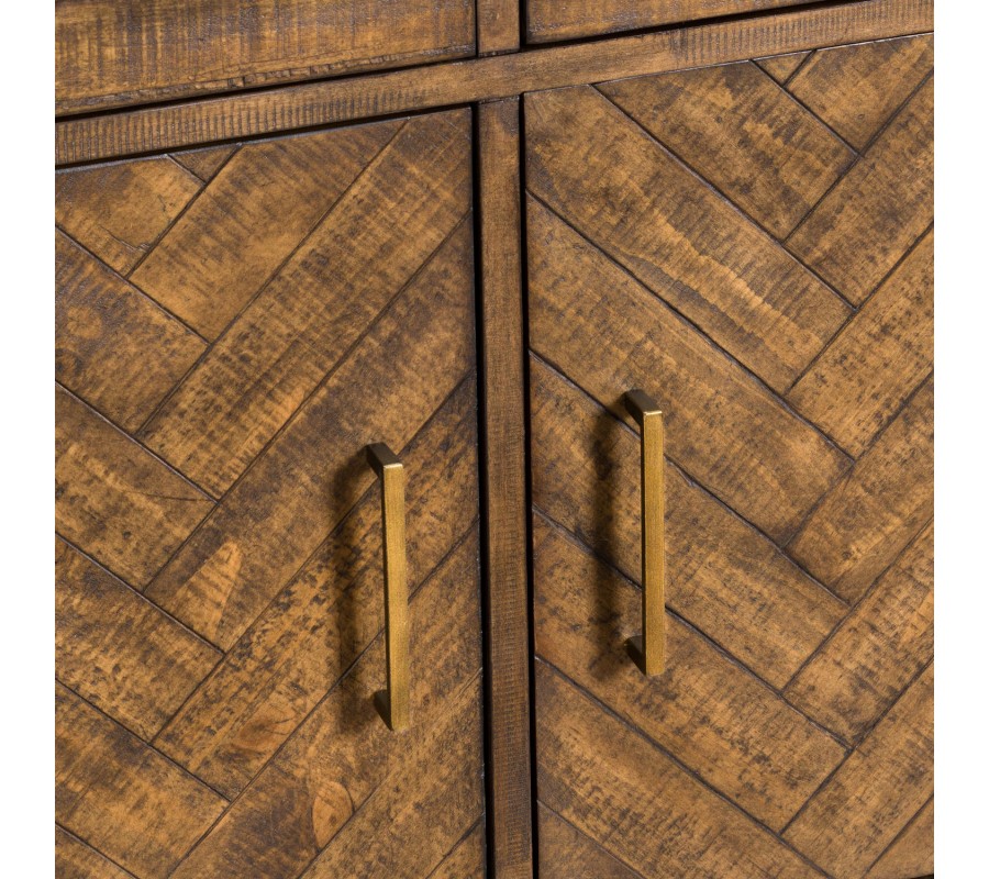 Retro príborník HAVANA ORO s parketovým vzorom na nožičkách zlatej farby 100cm
