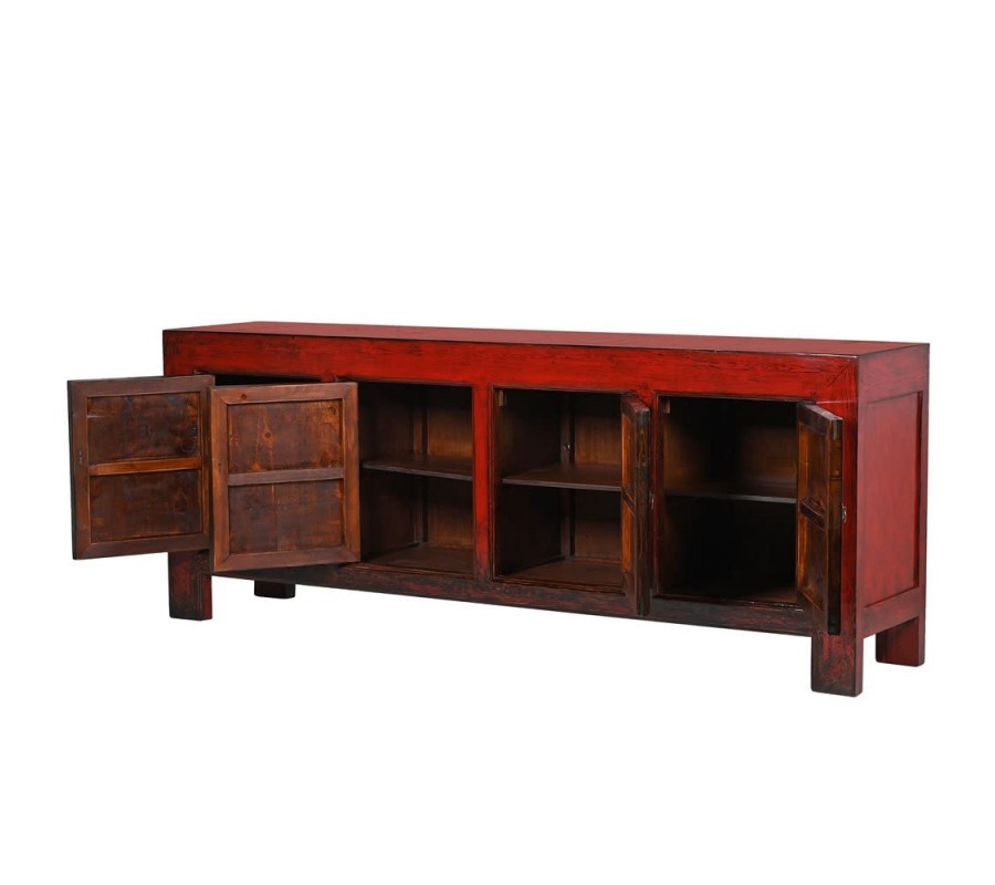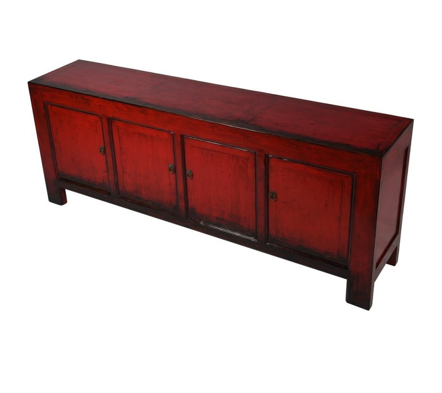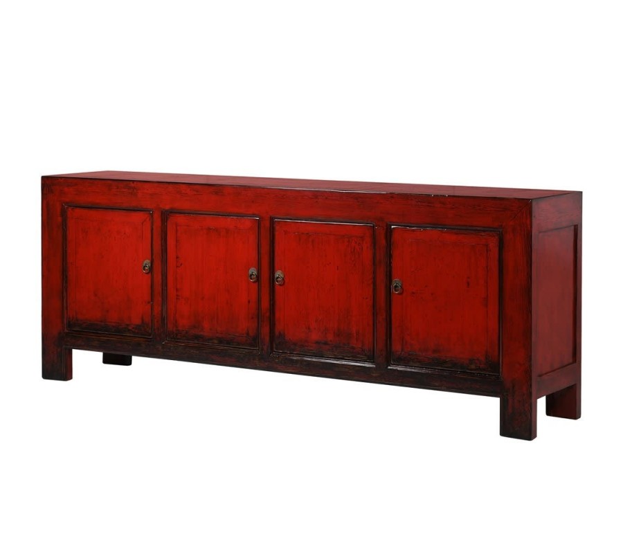 Vintage príborník Kolorida z masívneho dreva červenej farby so štyrmi dvierkami 25cm