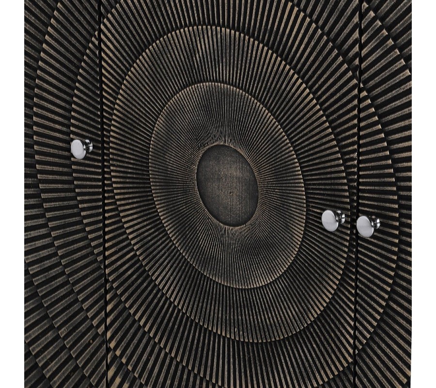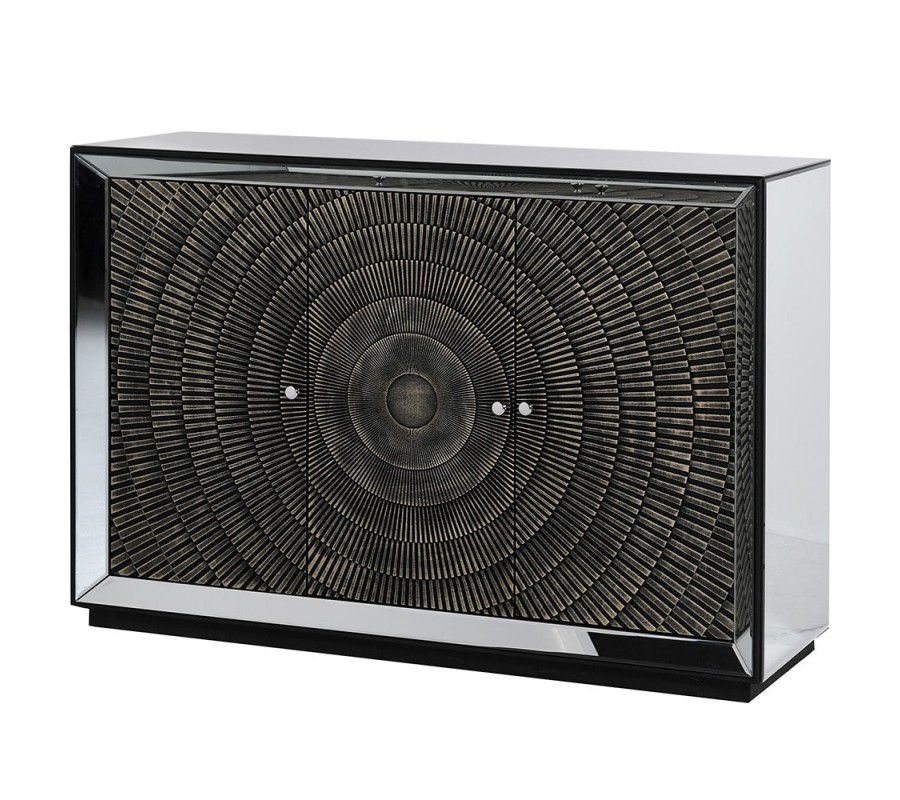 Dizajnový príborník Espejo Nera je vhodným doplnkom do každej modernej jedálne či obývačky. Je špecifický svojou konštrukciou čiernej farby s kruhovým geometrickým vzorom a zrkadlovým efektom. Príborník Espejo Nera okrem zaujímavého dizajnu ponúka aj úložný priestor v podobe poličiek s tromi dvierkami, ktoré uchránia vaše predmety pred prachom. Vďaka svojmu nadčasovému vzhľadu zapadne do každej modernej domácnosti a dá sa výborne doplniť rôznymi kovovými dekoráciami, doplnkami so zrkadlovým efektom či dizajnovými kobercami.