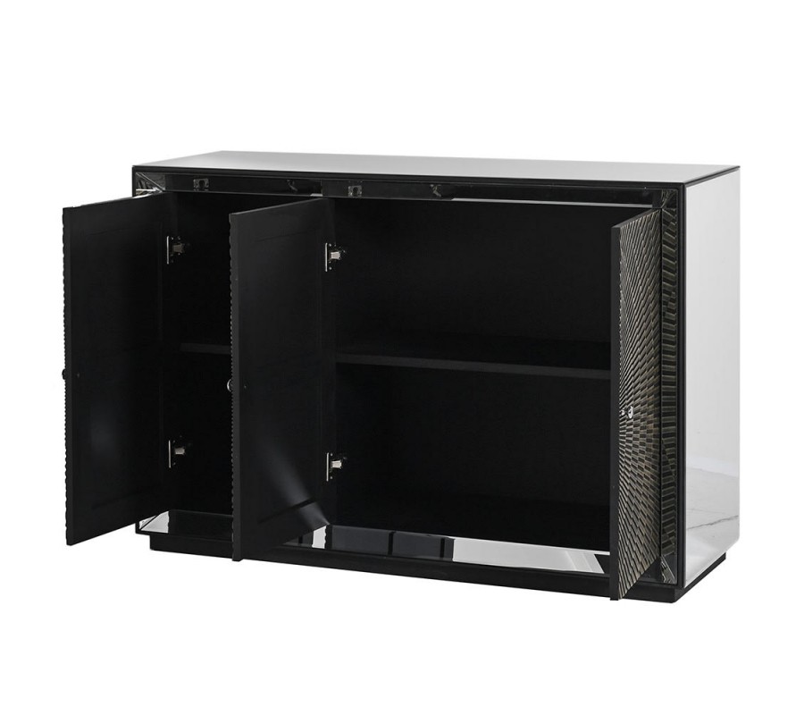 Zrkadlový moderný príborník Espejo Nera s tromi dvierkami v čiernej farbe 120cm