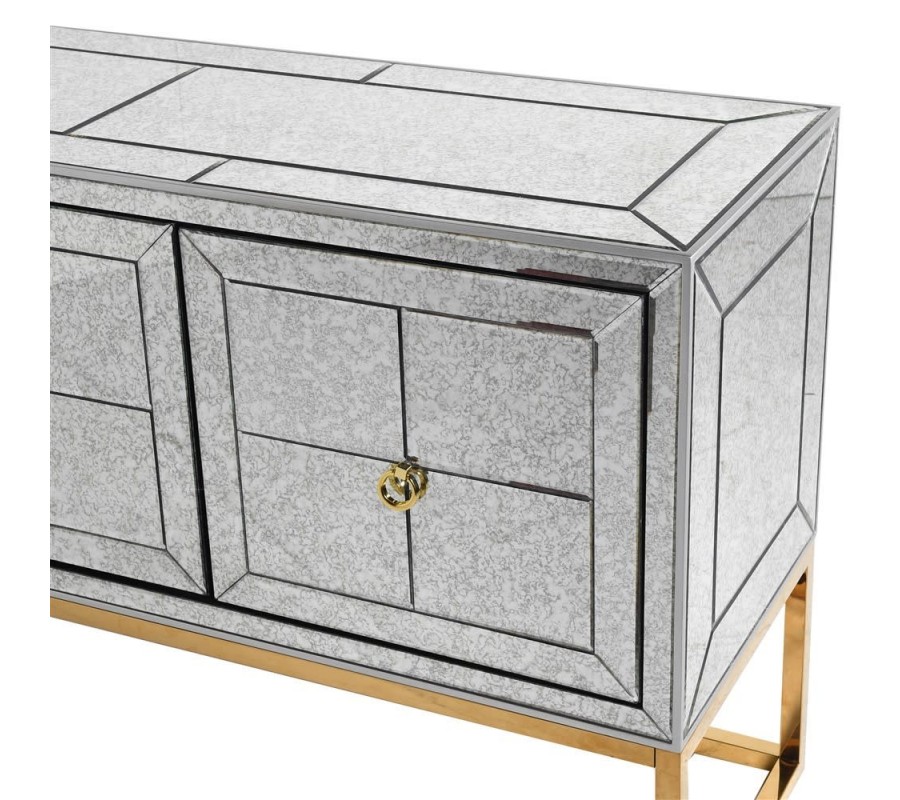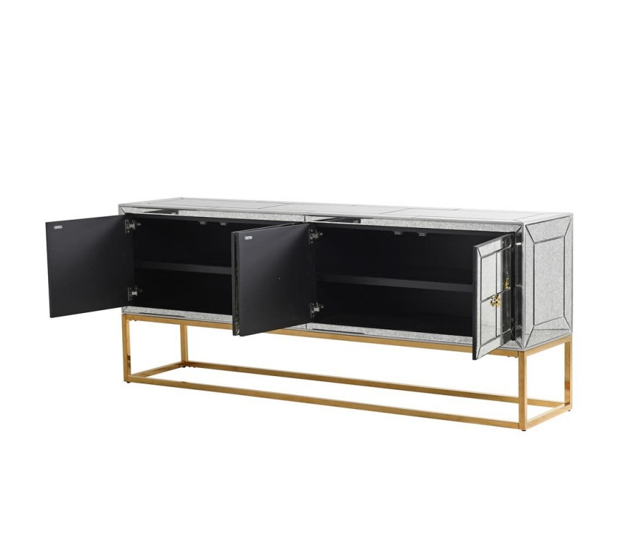 Art-deco luxusný príborník Arieda sivej farby so zlatou konštrukciou 200cm
