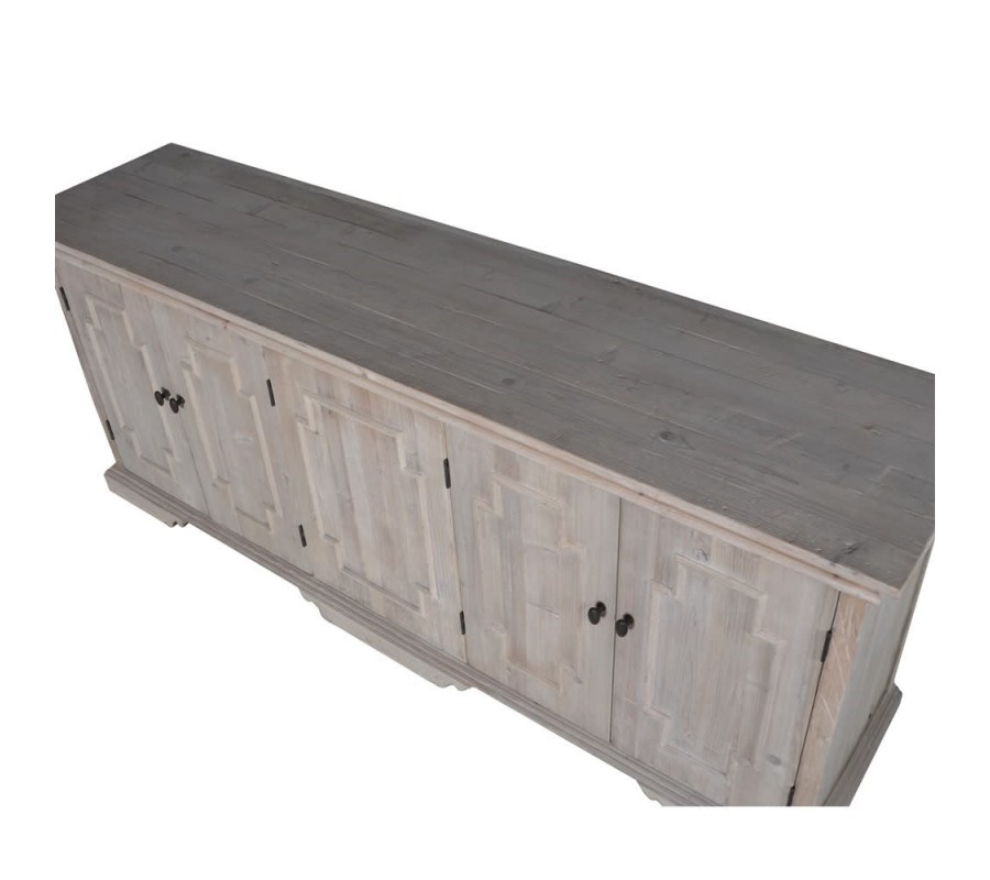 Vidiecky masívny príborník Bernie svetlohnedej farby so štyrmi dvierkami 207cm