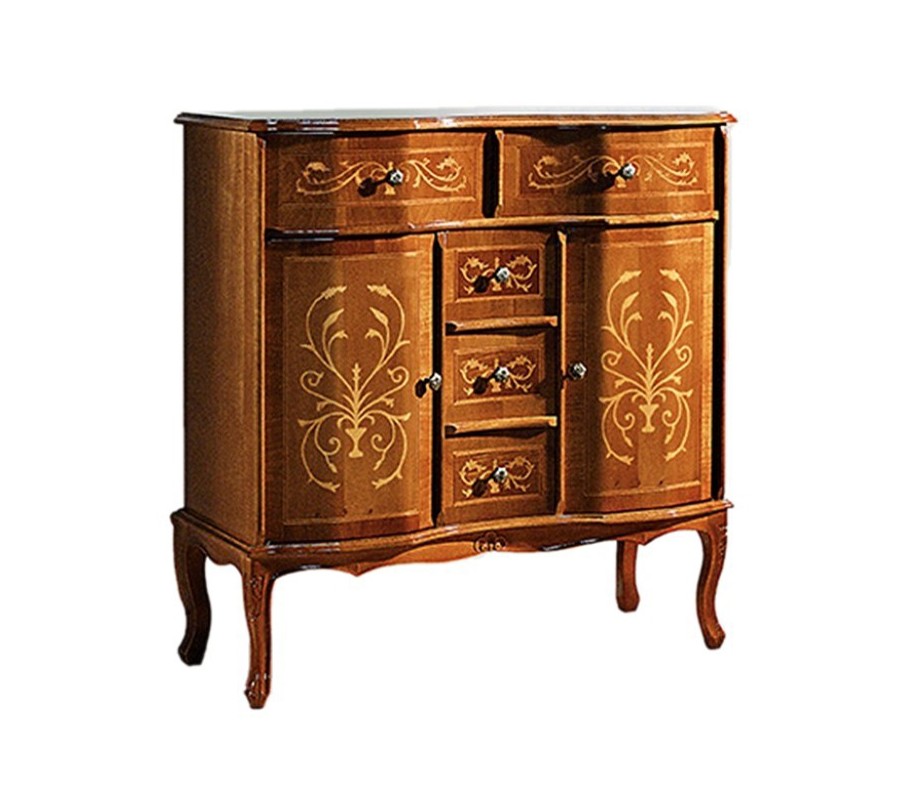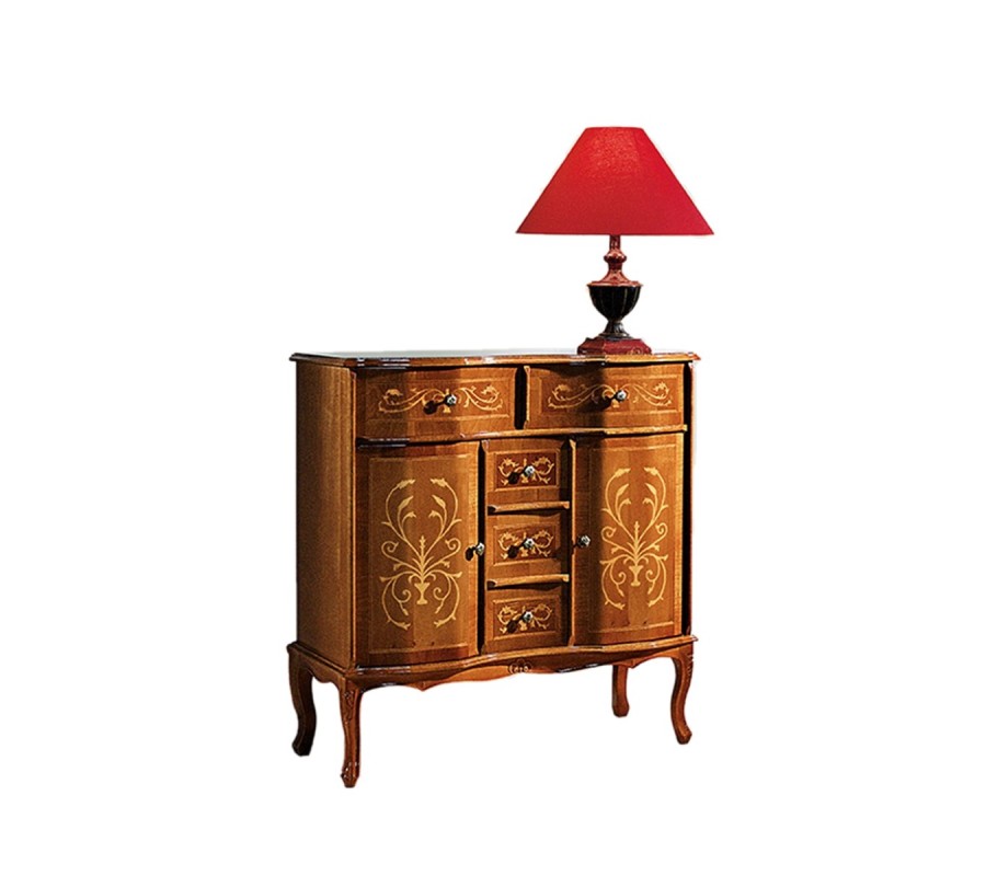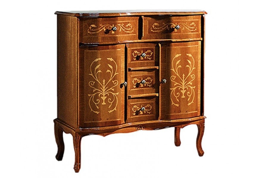 Luxusný klasický príborník Clasica s dvomi dvierkami a piatimi zásuvkami s rustikálnym zdobením 90cm