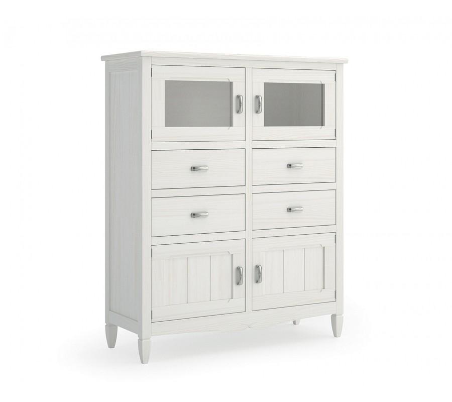 Luxusný príborník Amberes z našej rovnomennej kolekcie už na prvý pohľad zaujme svojím jedinečným vzhľadom. Predstavuje prepojenie moderného vzhľadu s nádychom rustikálneho či vidieckeho štýlu, čím vzniká unikátny nadčasový dizajn. Výroba z kvalitného masívneho dreva zabezpečuje prvotriednu kvalitu a jemné ručné vyrezávanie mu dodáva nádych originality a jedinečnosti. Dominantou dizajnu tohto kúsku sú čisté minimalistické línie, ktoré dopĺňajú precízne vyrezávané ozdobné prvky, ktoré do vašich priestorov vnesú štýlový rustikálny nádych. Príborník disponuje úložným priestorom v podobe poličiek so sklenenými a plnými dvierkami a štyroch zásuviek. Na výber ponúkame viaceré farebné prevedenia, ktoré si môžete prezrieť v priloženom vzorkovníku. Príborník Amberes krásne zapadne do obývačiek, jedální či kuchýň ladených v klasickom, ale i modernejšom štýle.