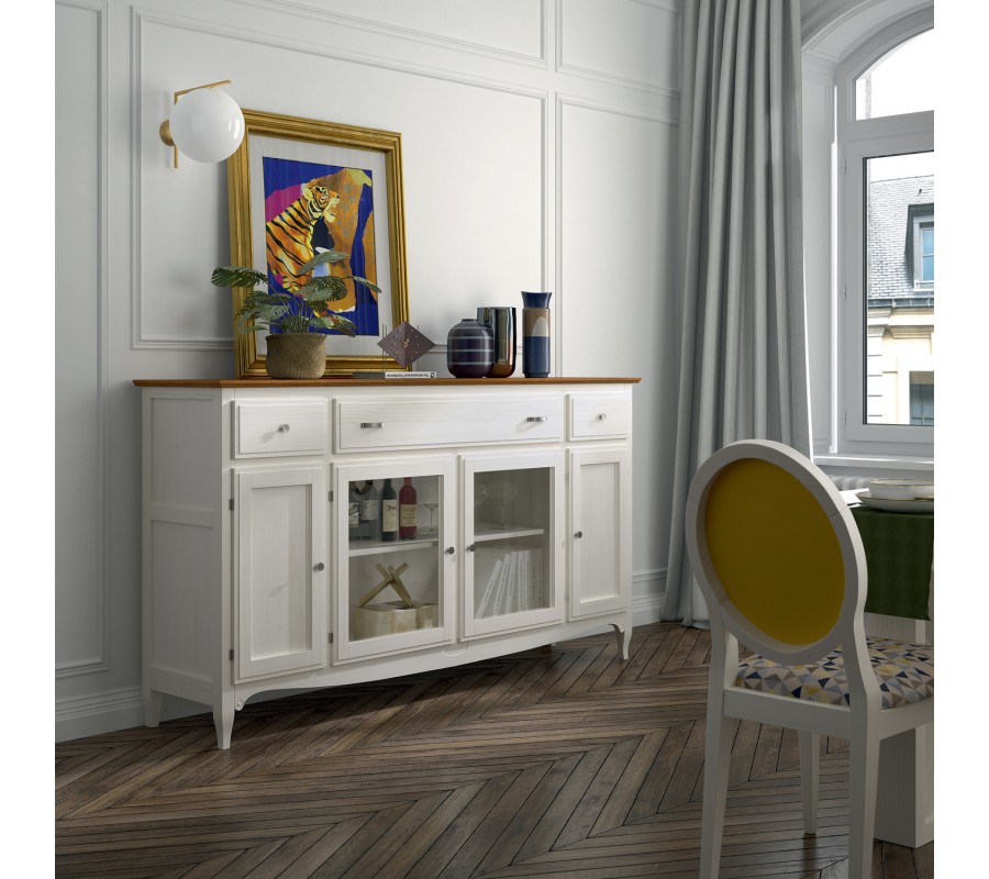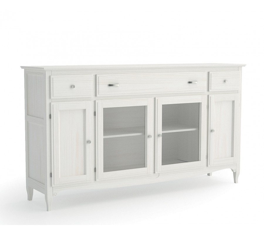 Elegantný príborník Fontana je kúskom vyrobeným z kvalitného masívneho dreva. Zaujme najmä vďaka nadčasovému dizajnu tvorenému z čistých línií a minimalistických geometrických tvarov. Celkový dizajn príborníka je inšpirovaný modernými trendami v prepojení s tradíciou a a rustikálnym vplyvom. Vzniká tak nadčasový vzhľad vhodný najmä do klasicky a rustikálne, ale i do modernejšie ladených interiérov. Príborník disponuje úložným priestorom v podobe troch zásuviek a poličiek s dvierkami. Na výber ponúkame niekoľko možných farebných prevedení, vďaka čomu nebudete mať problém s doladením tohto kúsku do vašich priestorov. Elegantné čisté tvary príborníka dopĺňa precízne ručné vyrezávanie na nožičkách a hranách, vďaka čomu dostáva originálny rustikálny nádych. Príborník Fontana je vhodný na využitie v jedálni či kuchyni, ale výborne poslúži aj ako komoda či skrinka v luxusných obývačkách či kanceláriách.