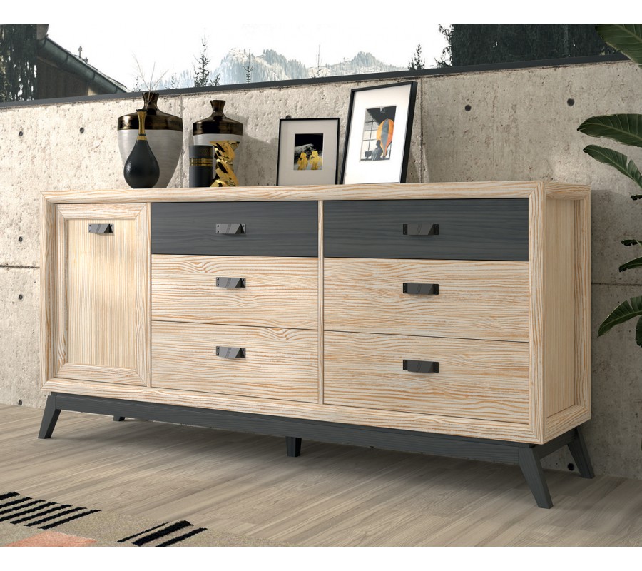 Luxusný moderný príborník Rodas na šikmých nožičkách so šiestimi zásuvkami a jednými dvierkami 187 cm