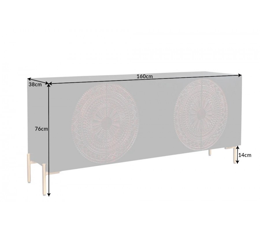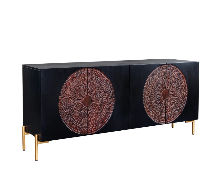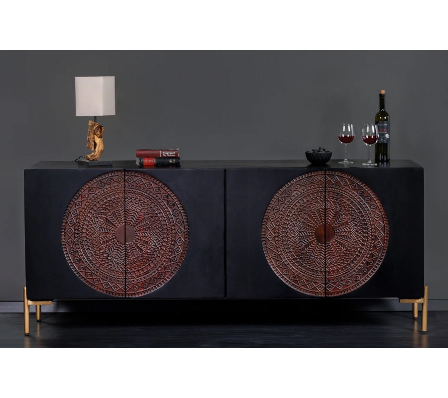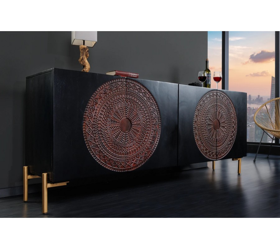 Orientálny masívny príborník Mandala z mangového dreva s ornamentálnym vyrezávaním a zlatými nožičkami