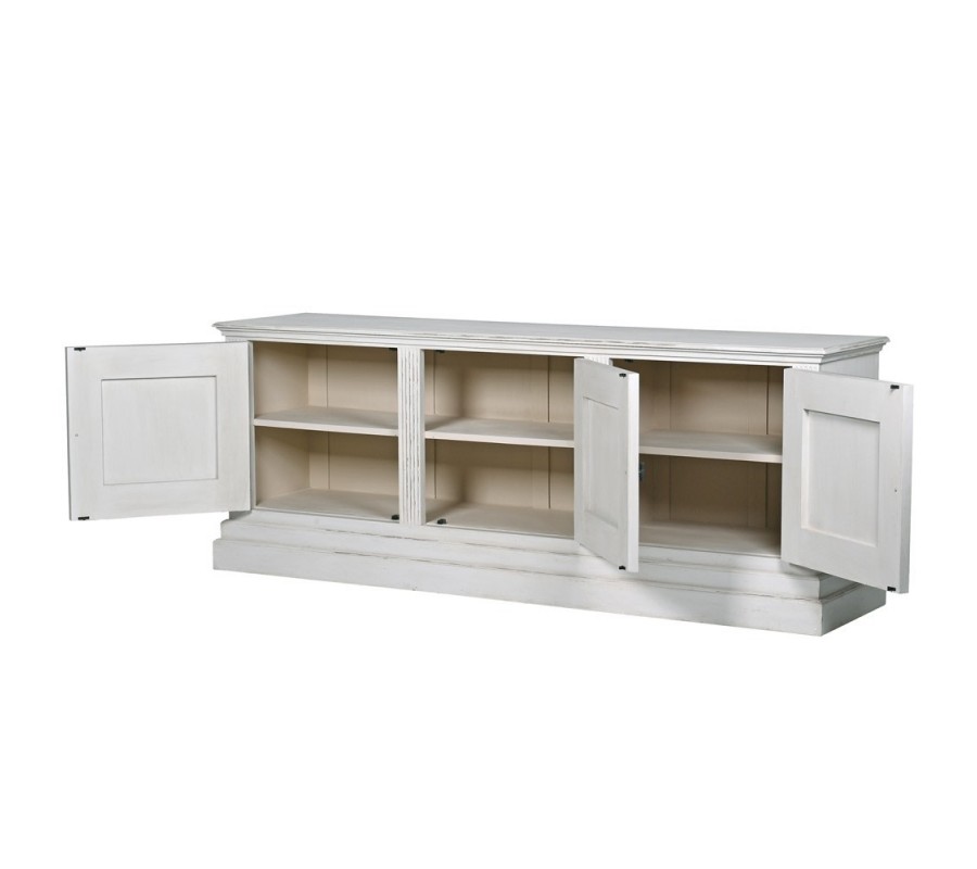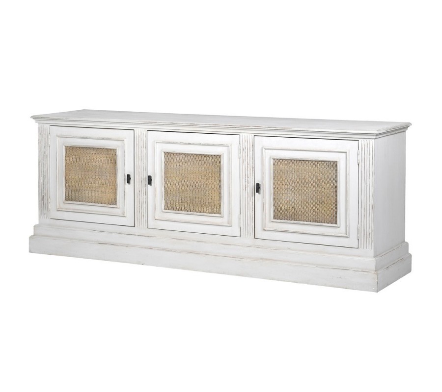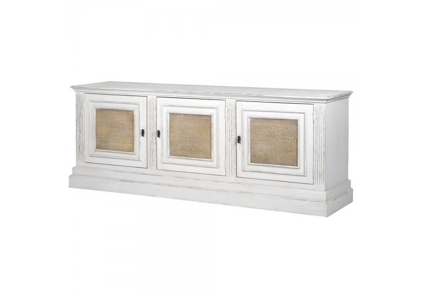 Luxusný provensálsky príborník Perell masívu v starobielej farbe s troma dizajnovými dvierkami 210cm
