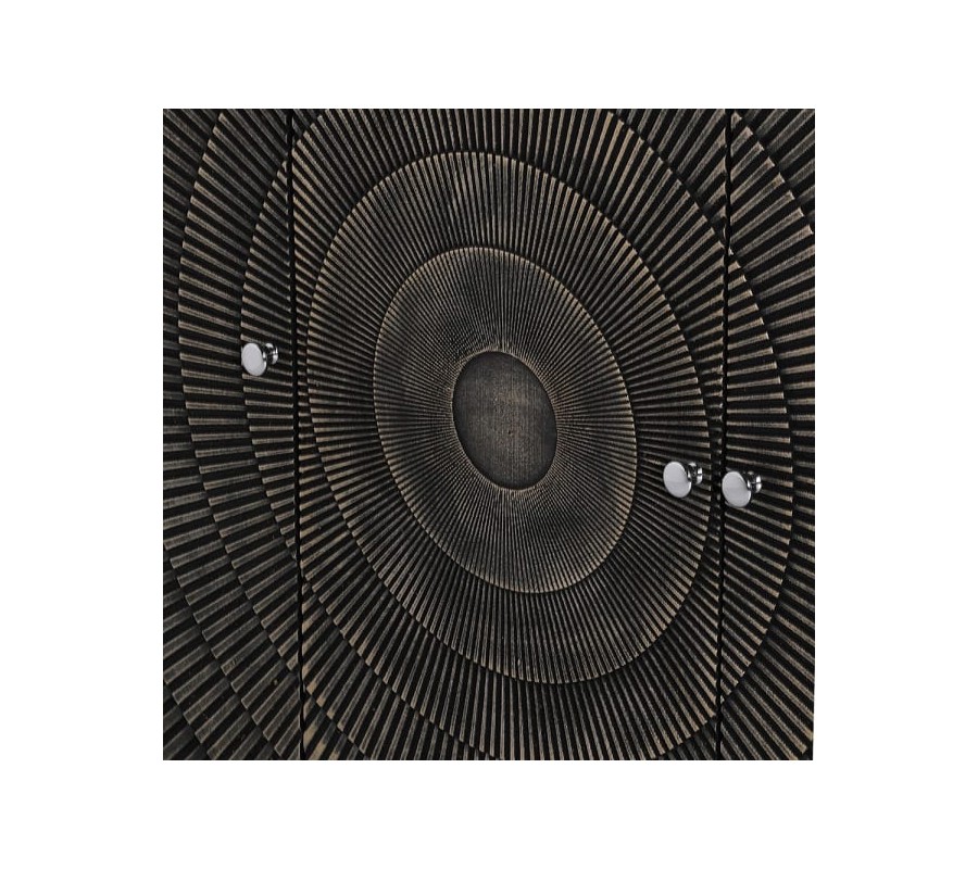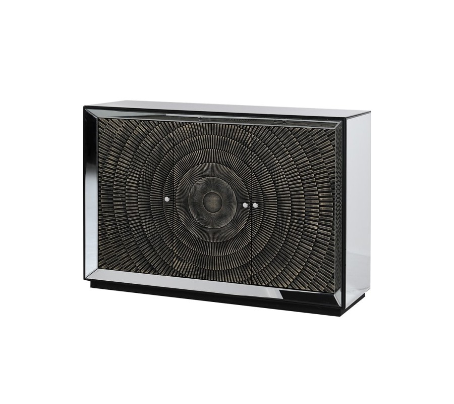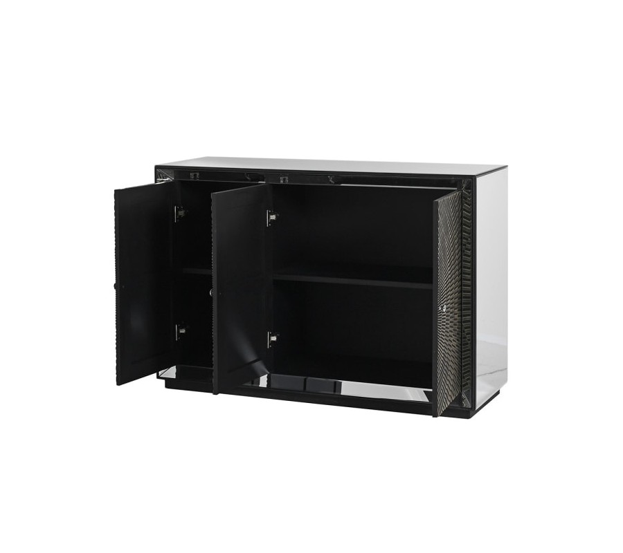 Art-deco zrkadlový príborník Espejo Nera do jedálne čiernej farby s dvierkami s geometrickým vyrezávaním 120cm