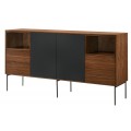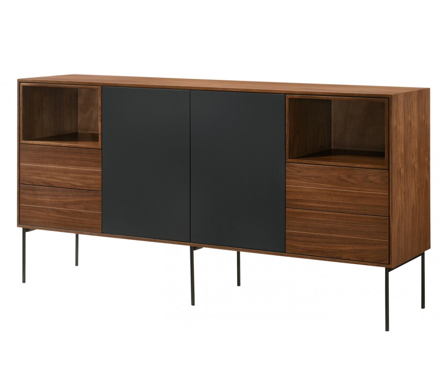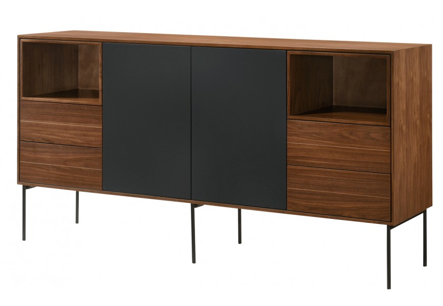 Škandinávsky príborník Nordica Nogal z dreva orechovo hnedej farby s úložným priestorom a čiernymi kovovými nožičkami 180cm