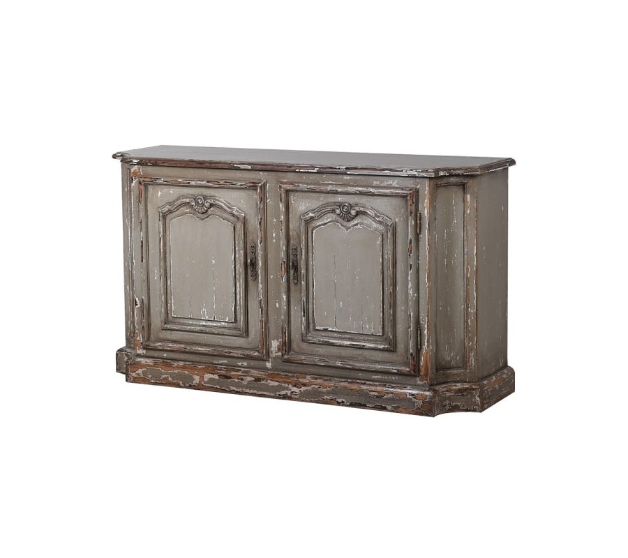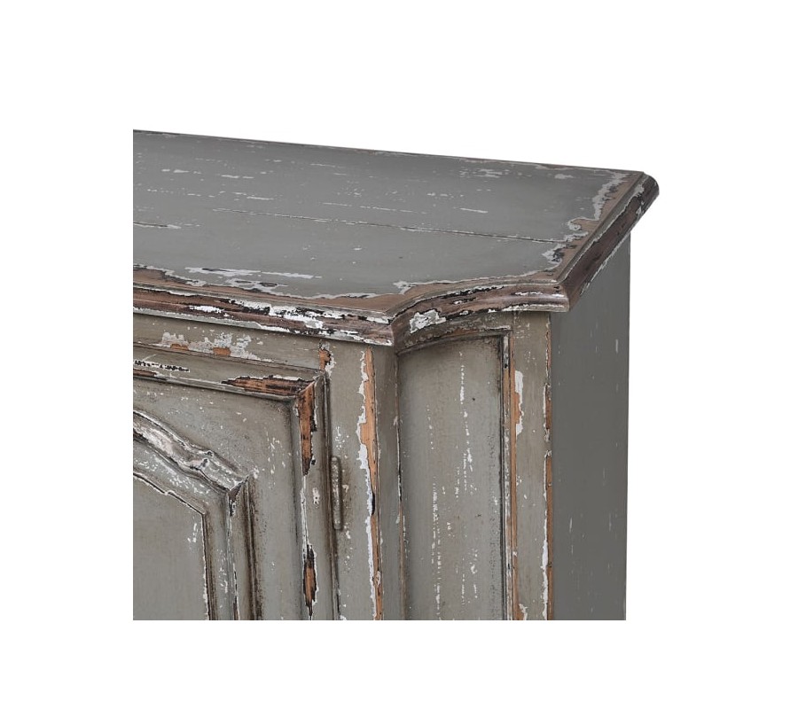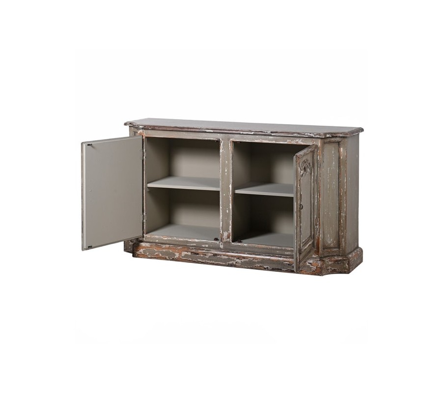 Exkluzívny príborník Dahlia predstavuje kombináciu vintage a rustikálneho štýlu. Svojím starožitným vzhľadom premení váš interiér na luxusnú vilu z minulého storočia a svojím rustikálnym zdobením dopomôže k vytvoreniu skutočného útulného nádychu domova. Príborník je vyrobený z kvalitného masívneho dreva a jeho povrchová úprava hnedosivej farby je doplnená o autentickú patinu zostarnutia. K vintage vzhľadu prispieva taktiež nádherné detailné rustikálne vyrezávanie na dvierkach a elegantnéozdobné rukoväte. Úložný priestor v podobe štyroch poličiek je vhodný na uskladnenie všetkých vašich kuchynských a jedálenských potrieb. Príborník Dahlia odporúčame umiestniť do vintage či rustikálne ladených jedální alebo obývačiek, kde vďaka svojmu jedinečnému vzhľadu vytvorí nádherný starožitný nádych.