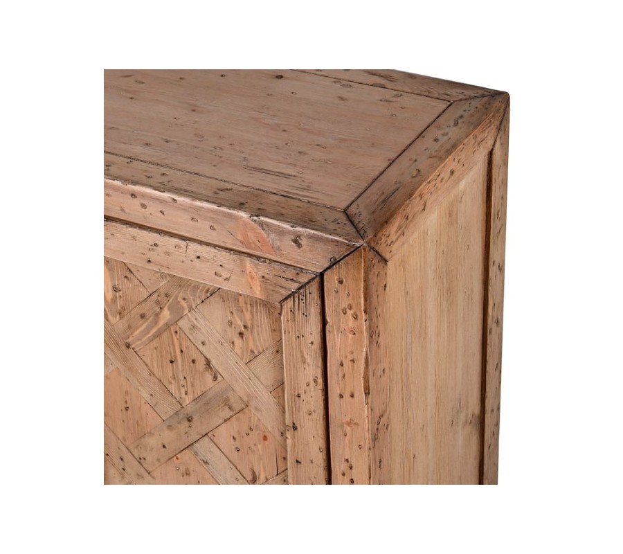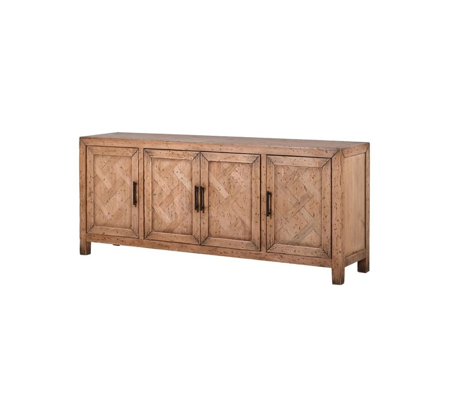 Masívny príborník Emilio vo vidieckom štýle s poličkami a dvierkami s parketovým vzorom 200cm