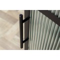Ak hľadáte industriálnu vitrínu, ktorá nezaberie priveľa miesta, tak vitrína z kolekcie kovového nábytku Industria Durante bude kúskom práve pre Vás. Dizajn vitríny sa pýši čiernym kovovým vyhotovením s práškovým nástrekom, pre umocnenie industriálneho nádychu. Kovový vzhľad je doplnený rebrovaným sklom na dvierkach vitríny Industria Durante, ktoré chránia vnútorný úložný priestor s dvoma poličkami. Dvierka taktiež disponujú kovovými rukoväťami v čiernej farbe, a pre pohodlné zatváranie je tu pre Vás magnetický mechanizmus dvierok. Moderná industriálna vitrína Industria Durante vynikne v industriálnych interiéroch s kovovým a masívnym hnedým nábytkom, alebo napríklad aj v moderných farebných interiéroch so svetlo čalúnenými sedačkami a kovovými doplnkami.