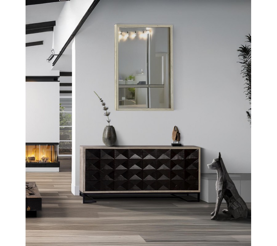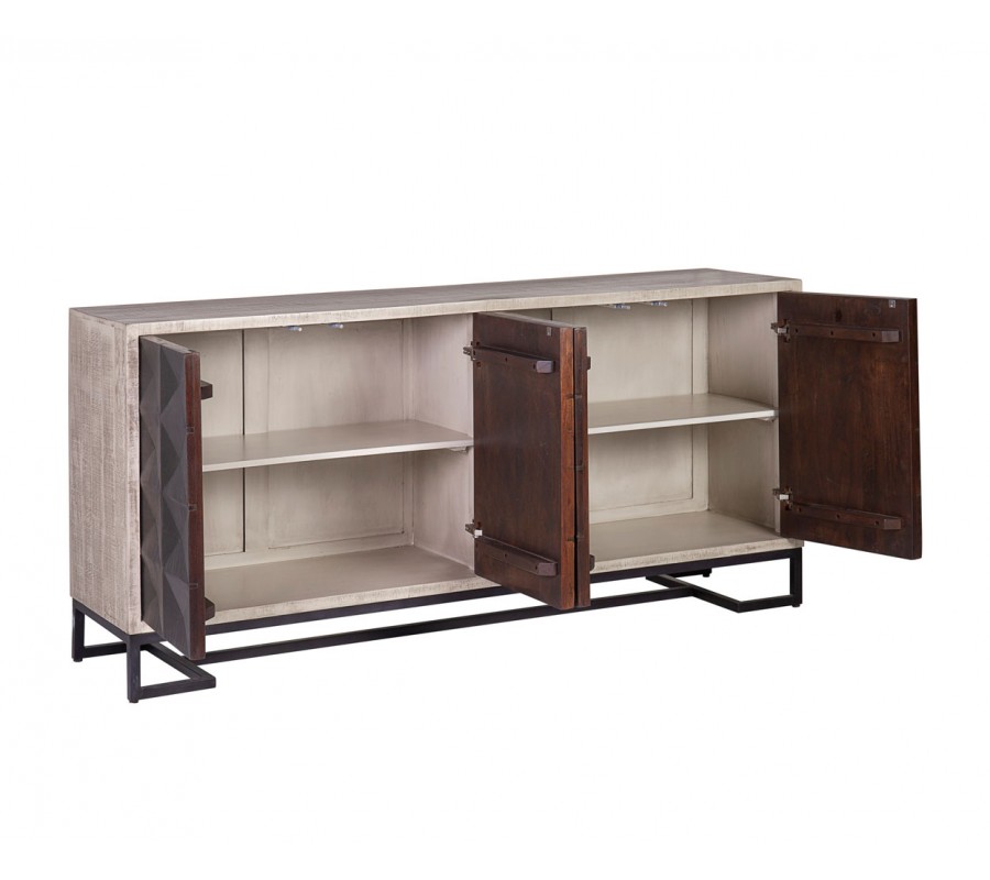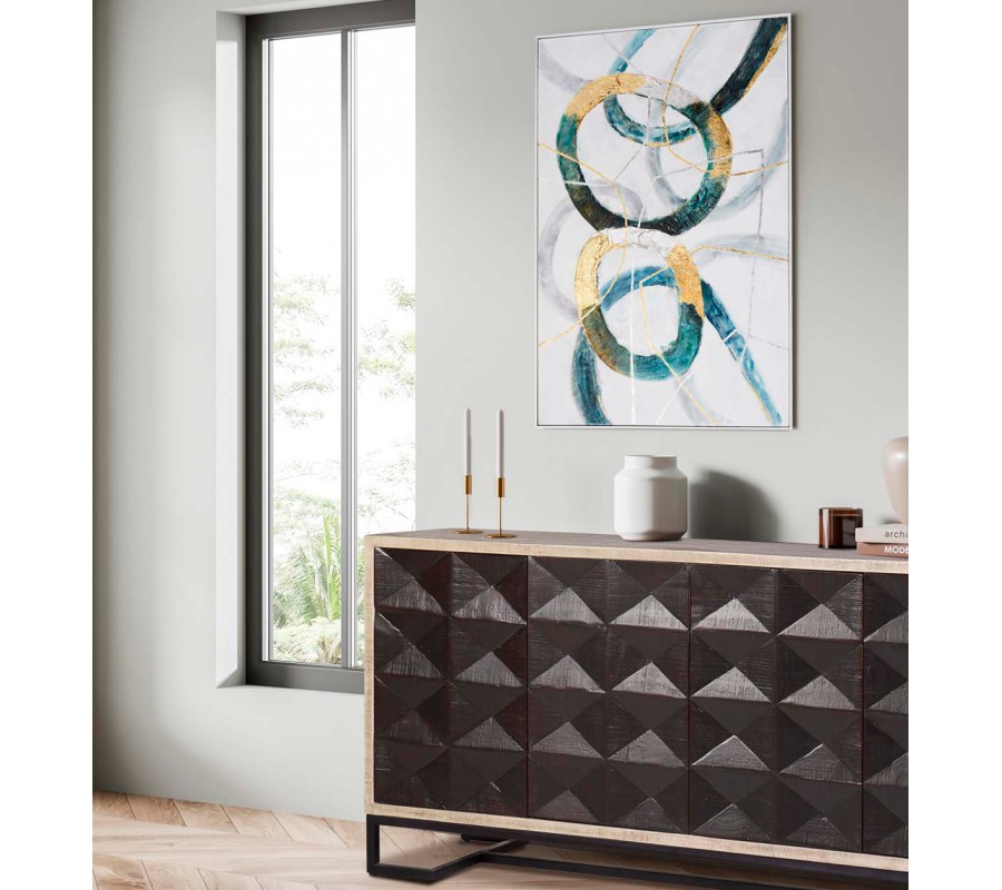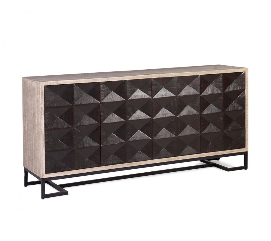 Luxusný štýlový príborník Sarajevo z akáciového masívu s geometrickým vzorom a s čiernou kovovou podstavou 183cm