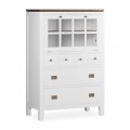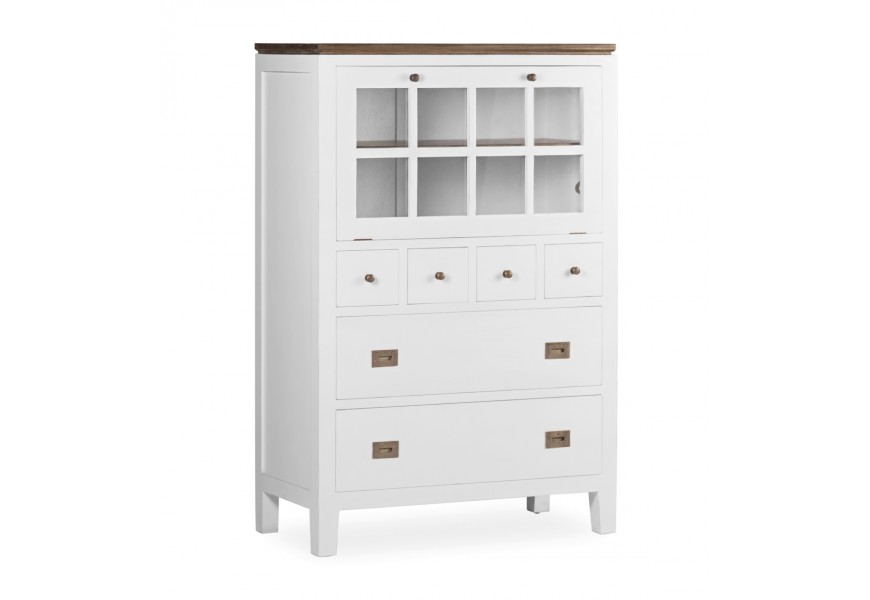 Luxusný masívny kredenc Blanc bielej farby v bielom prevedení so zásuvkami a sklenenými dvierkami 135cm