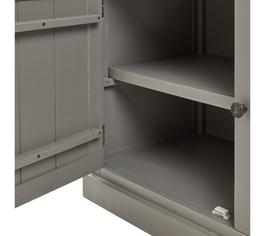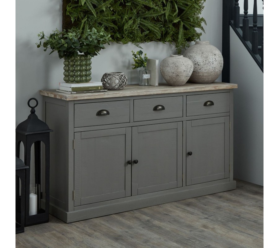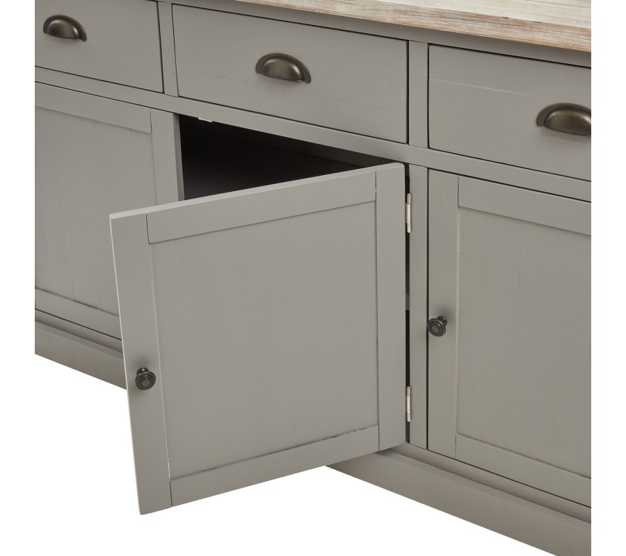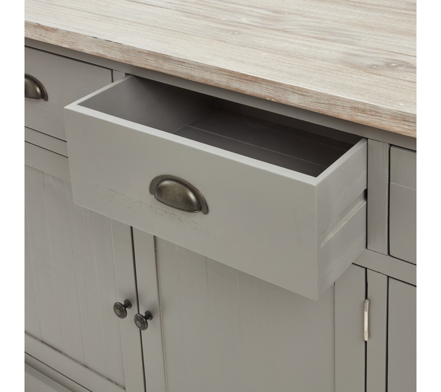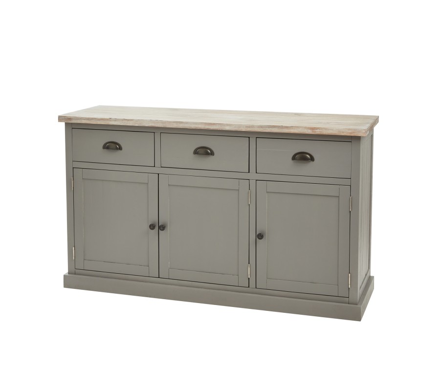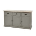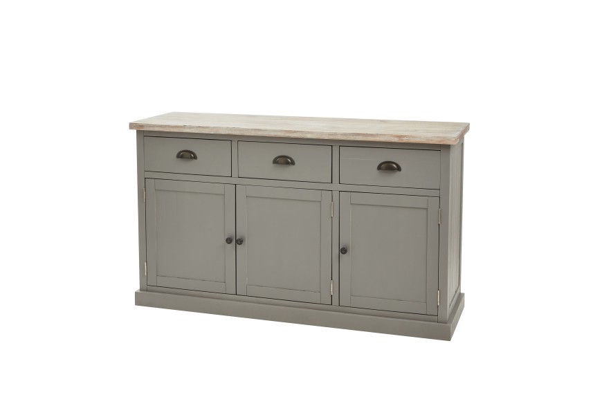 Masívny elegantný príborník Greytone v provensálskom štýle sivej farby s hnedou povrchovou doskou 153cm